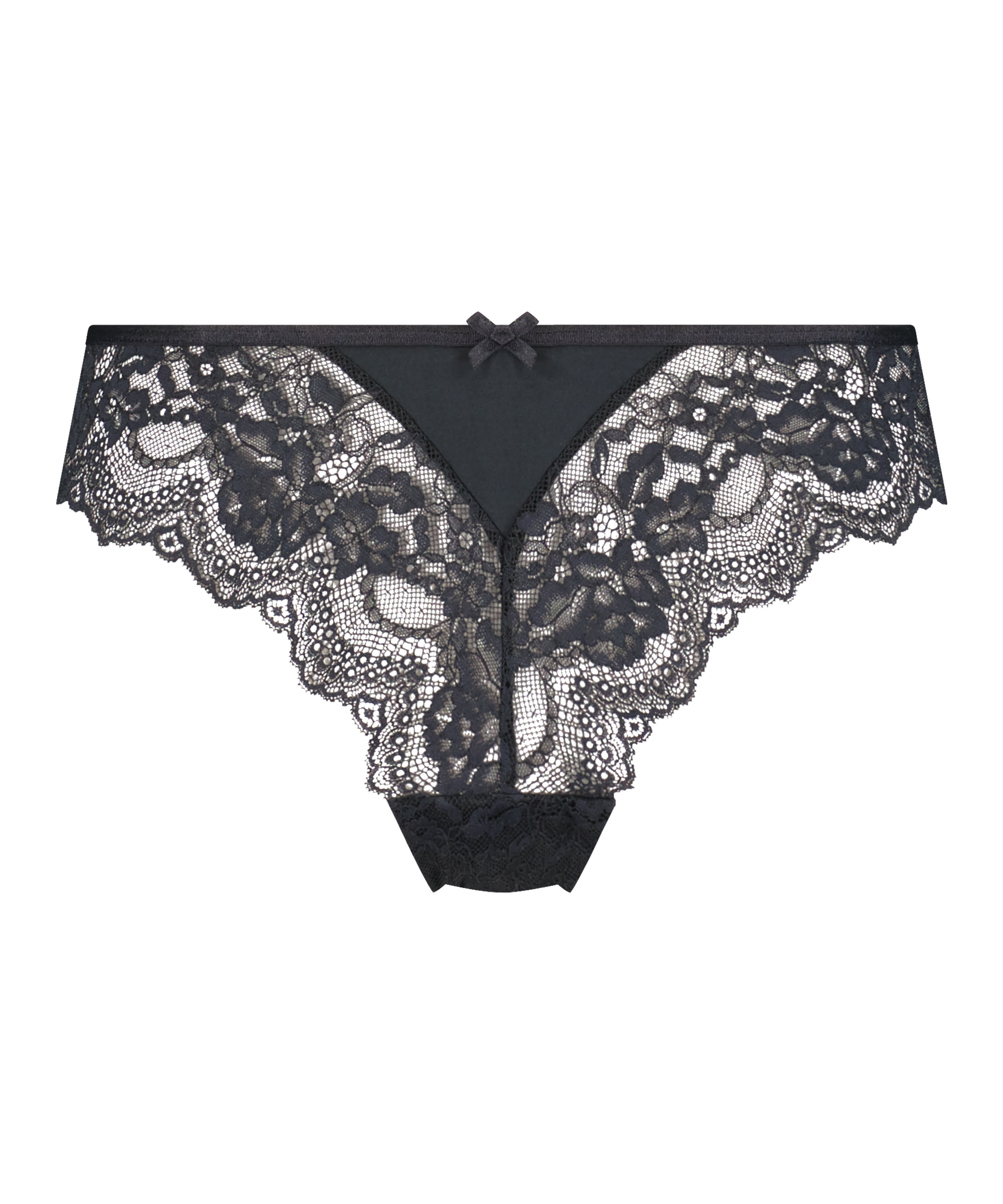 Gå ikke glip af denne behagelige brasilianske trusse! Med blonde overalt og fuldendt med en sød sløjfe. Match med din yndlings-bh!