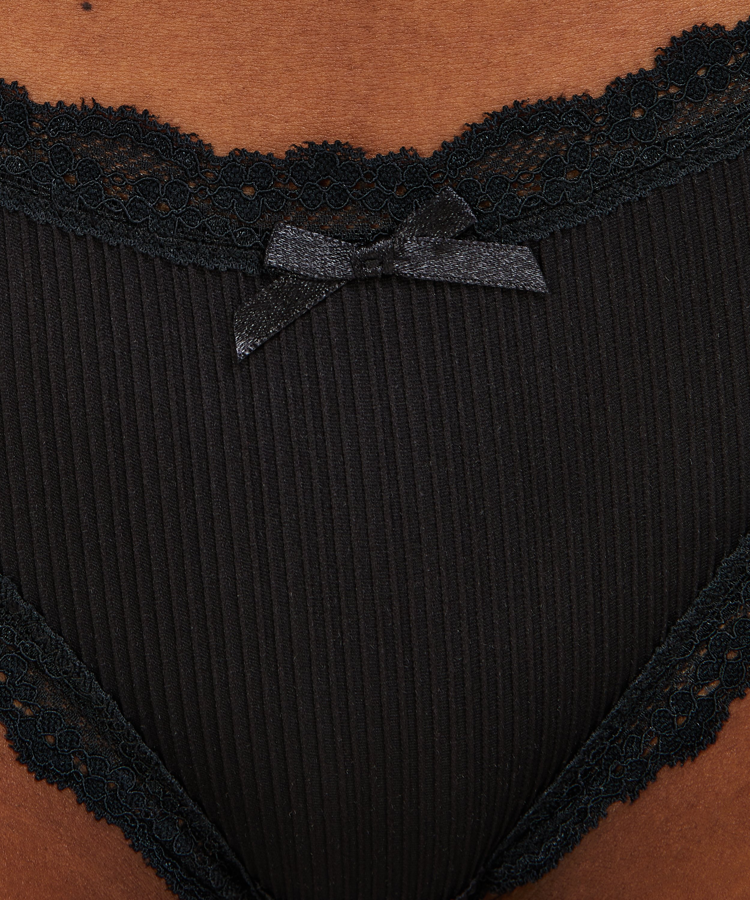 Denne brasilianske trusse er perfekt til den, der ønsker at holde det enkelt! Kanterne er af blonder og resten af den brasilianske trusse er lavet af ribbet stof. Kombinér med en matchende bh for at gøre dit sæt komplet!