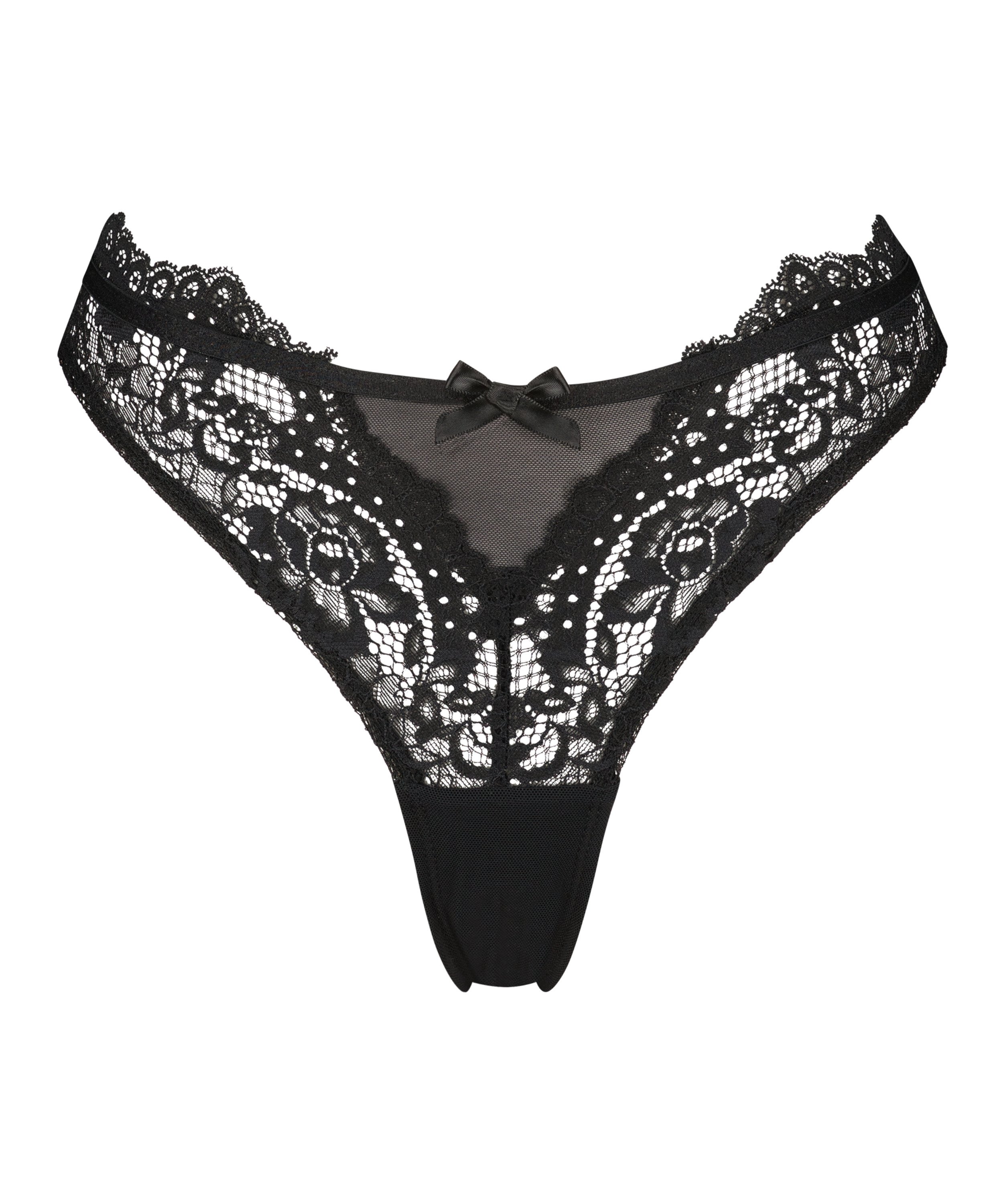 Strål i denne brasilianske trusse! Den brasilianske trusse er udskåret højt og forsynet med smukke og luksuriøse detaljer af blonder og mesh.Sløjfen foran runder den fint af!