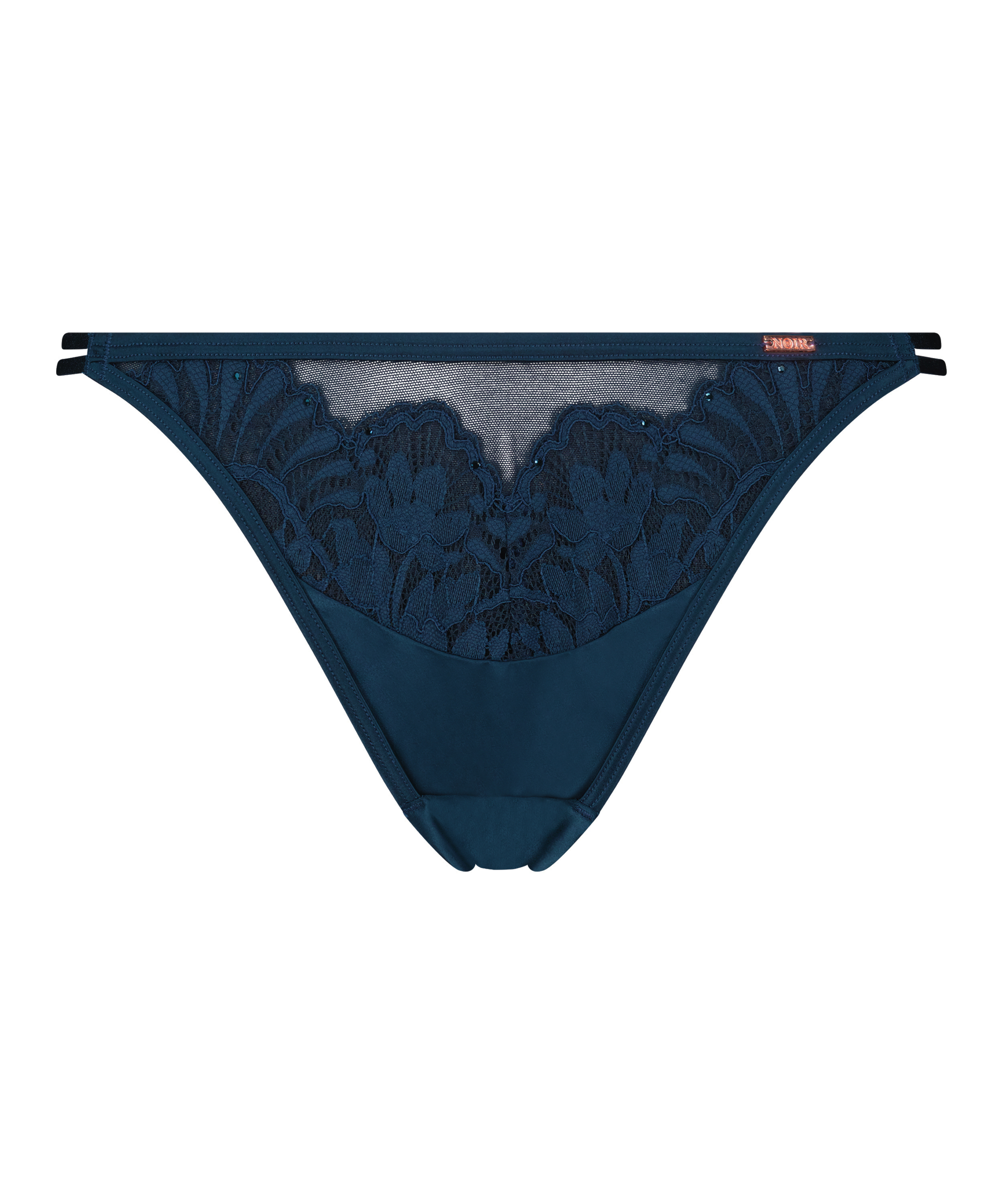 Nyd denne brasilianske blondetrusse fuldt ud! Den har et semi-transparent look over det hele, med stiverdetaljer foran. Sæt den sammen med den matchende bh! En del af Noir Collection.