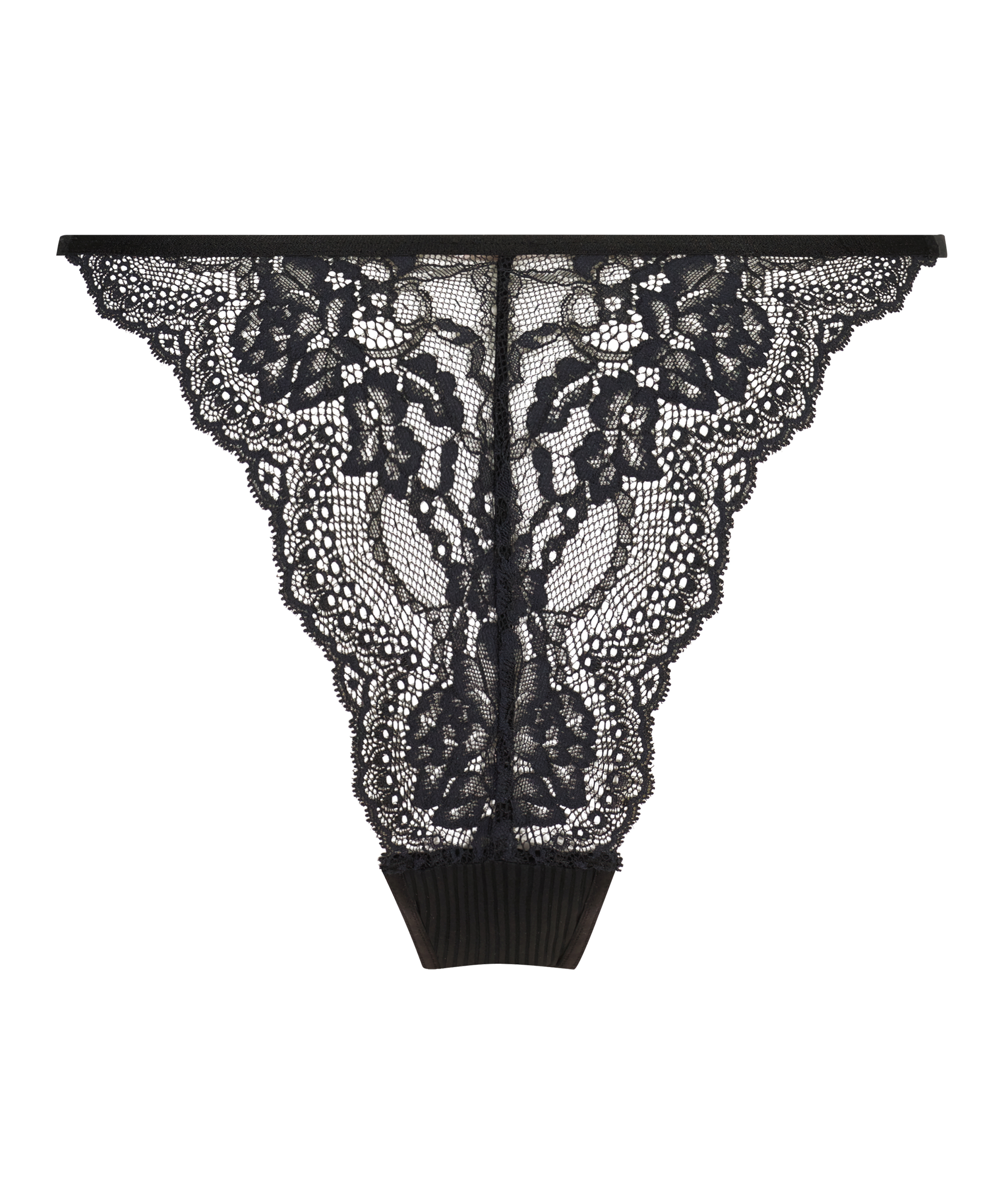 Hvis du leder efter behagelige og lette trusser, så er disse perfekte til dig. Der er masser af romantisk blonde bagpå og et semitransparent ribbet look foran. Match med din yndlings-bh!