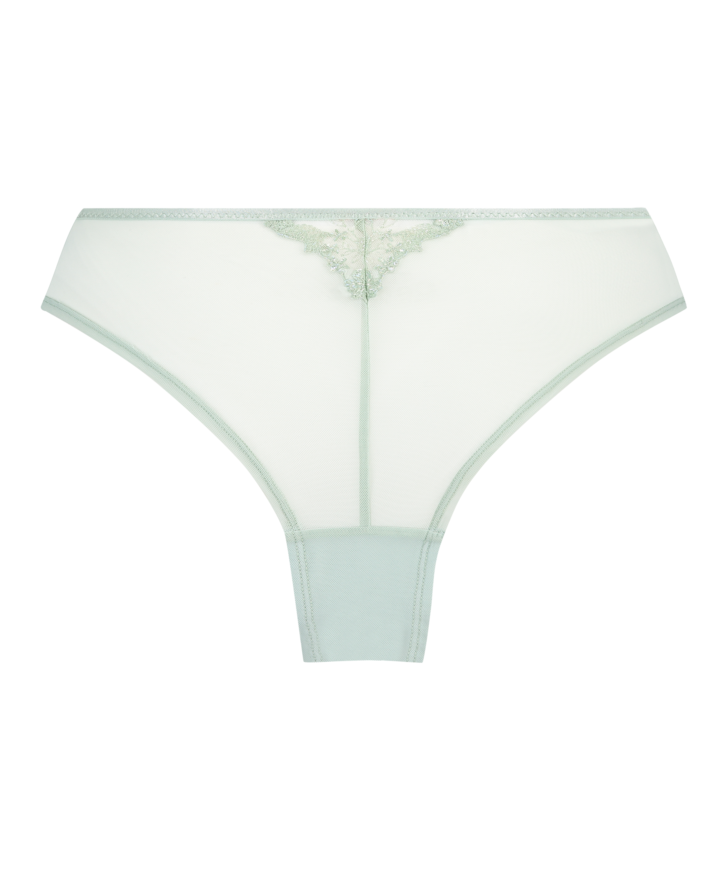 Denne brasilianske trusse er super sød! Den indeholder en masse blonder og også mesh bagpå. Kombinér med passende tilbehør for et komplet look!