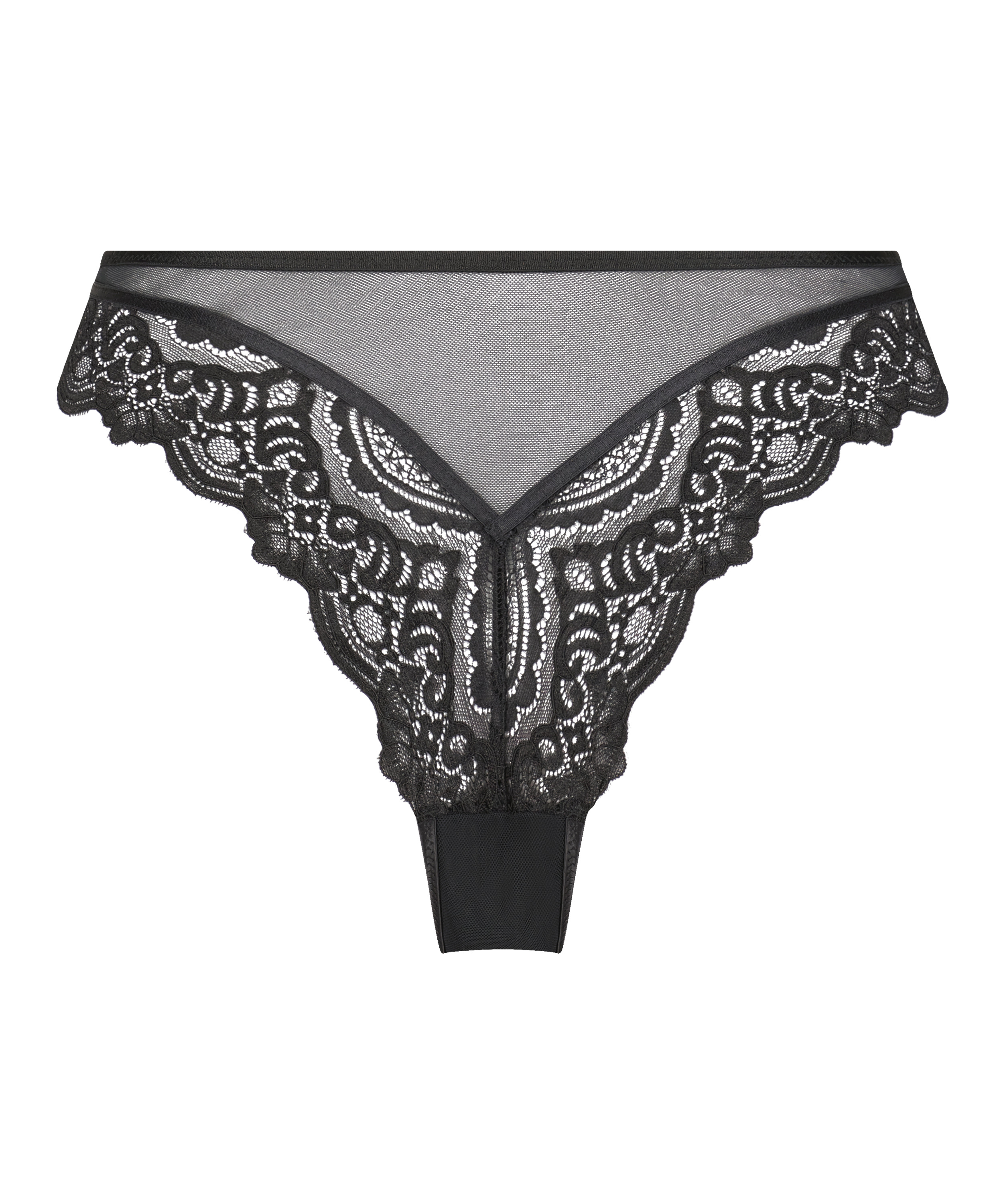 Føl dig godt tilpasse i denne halfstring! Et perfekt design med høj talje, som får dig til at føle dig mere selvsikker og sexet. Med blondedetaljer og gennemsigtigt materiale bagpå. Find de matchende bh'er i kollektionen!