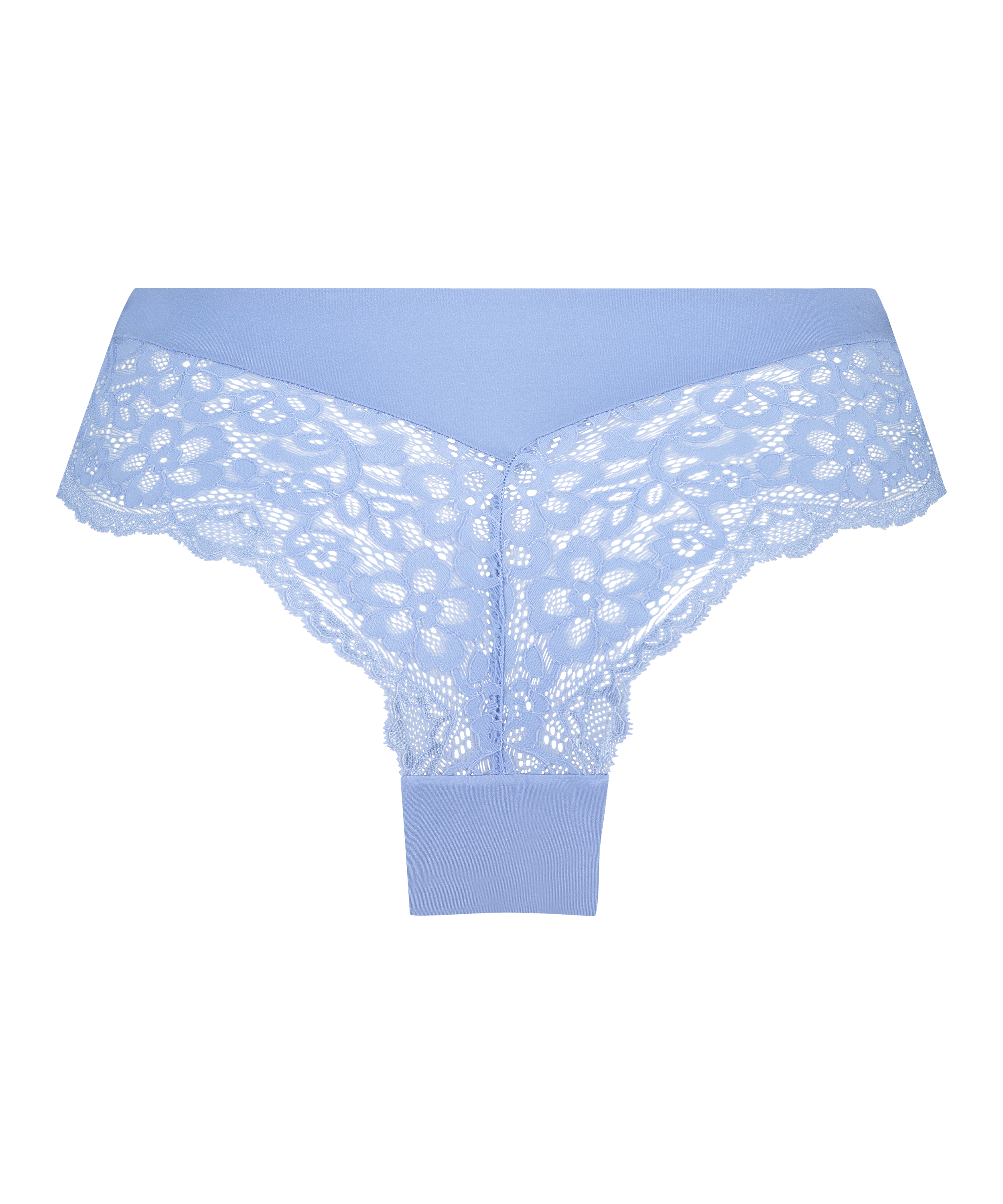 Denne brasilianske trusse er helt beklædt med blondestof, som er supersexet! Den er også pyntet med en lille sløjfe i midten. Kombiner med den matchende bh for et fuldendt look!