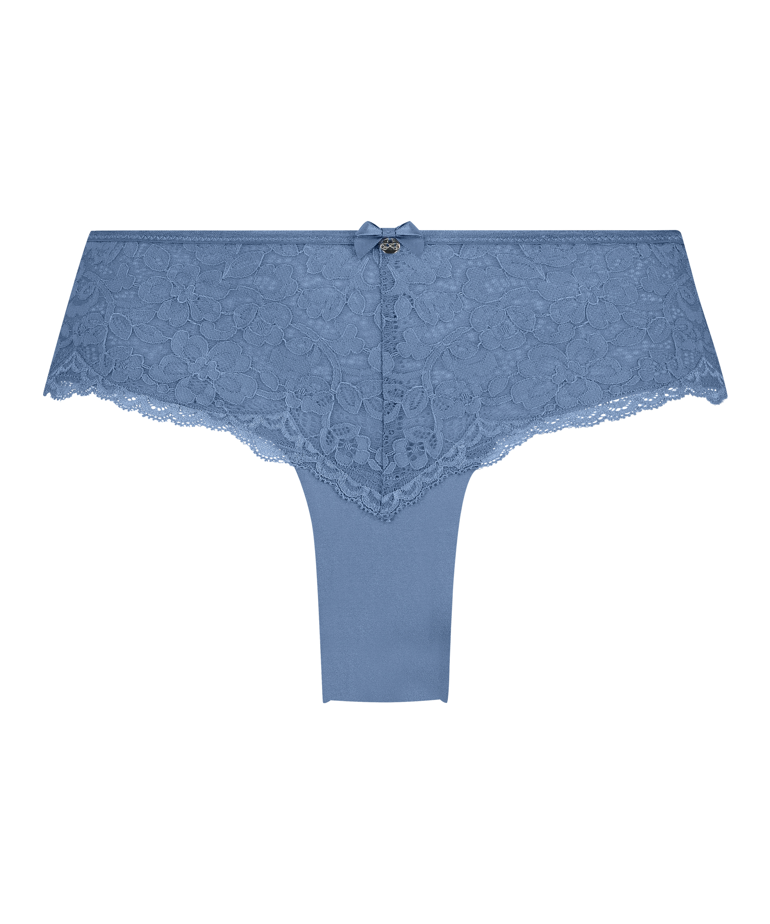 Denne brasilianske trusse er helt beklædt med blondestof, som er supersexet! Den er også pyntet med en lille sløjfe i midten. Kombiner med den matchende bh for et fuldendt look!