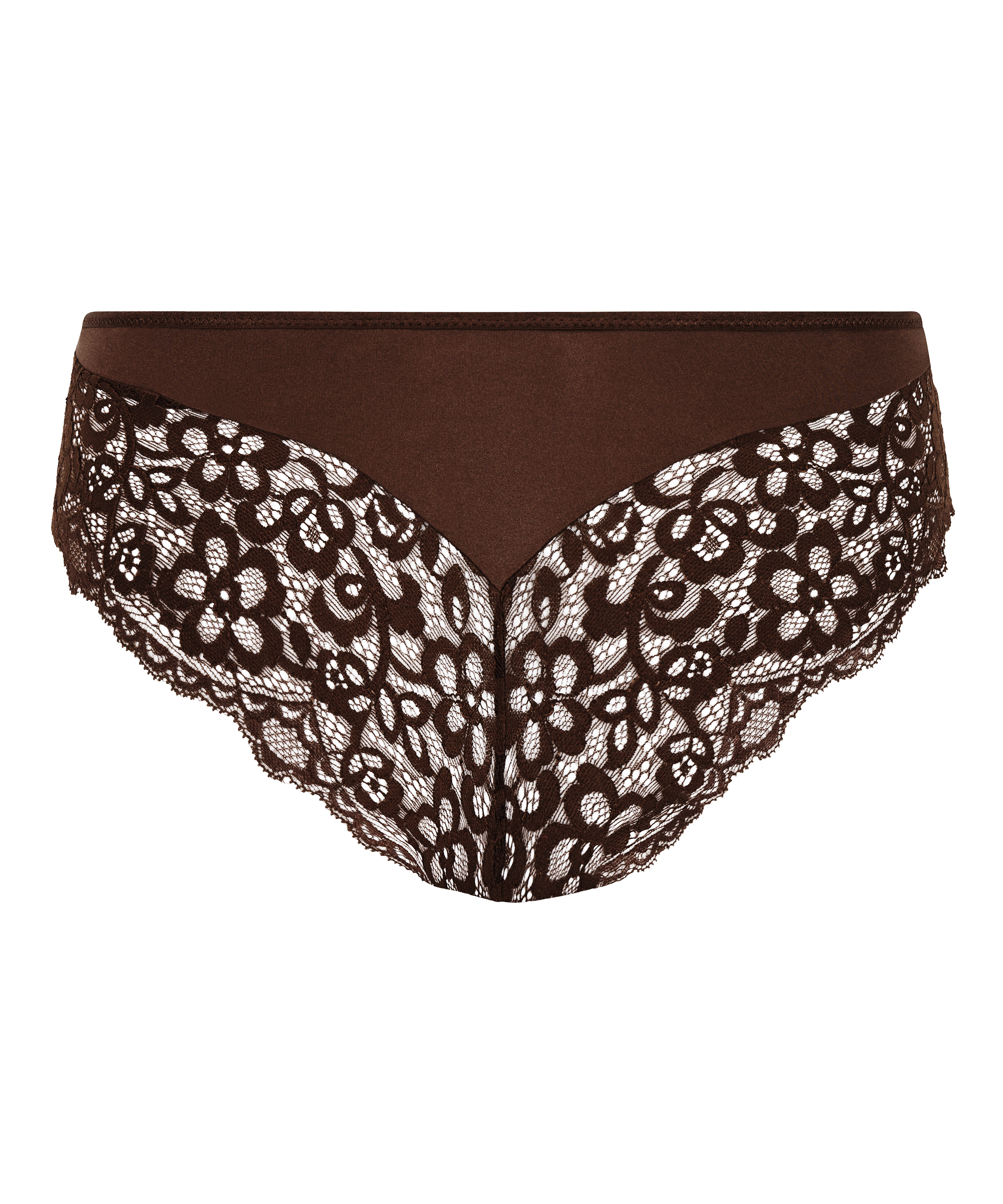 Denne brasilianske trusse er helt beklædt med blondestof, som er supersexet! Den er også pyntet med en lille sløjfe i midten. Kombiner med den matchende bh for et fuldendt look!