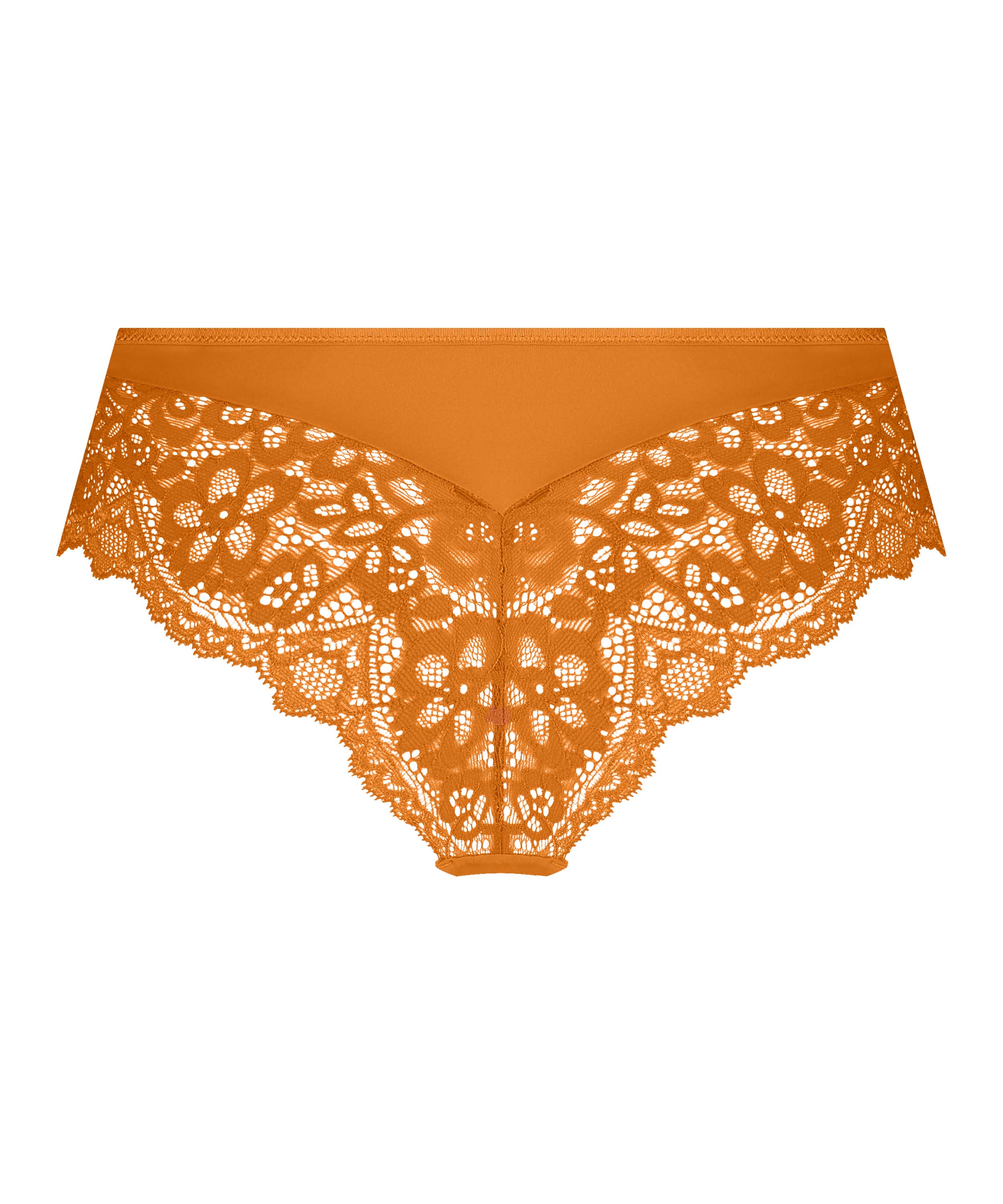 Denne brasilianske trusse er helt beklædt med blondestof, som er supersexet! Den er også pyntet med en lille sløjfe i midten. Kombiner med den matchende bh for et fuldendt look!