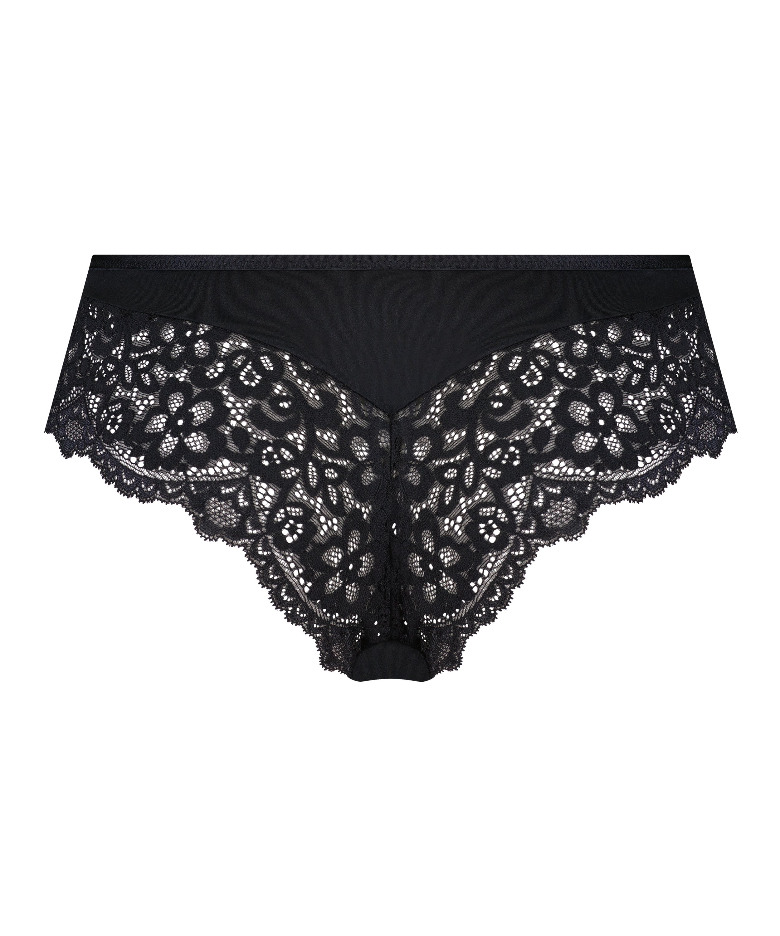 Denne brasilianske trusse er helt beklædt med blondestof, som er supersexet! Den er også pyntet med en lille sløjfe i midten. Kombiner med den matchende bh for et fuldendt look!