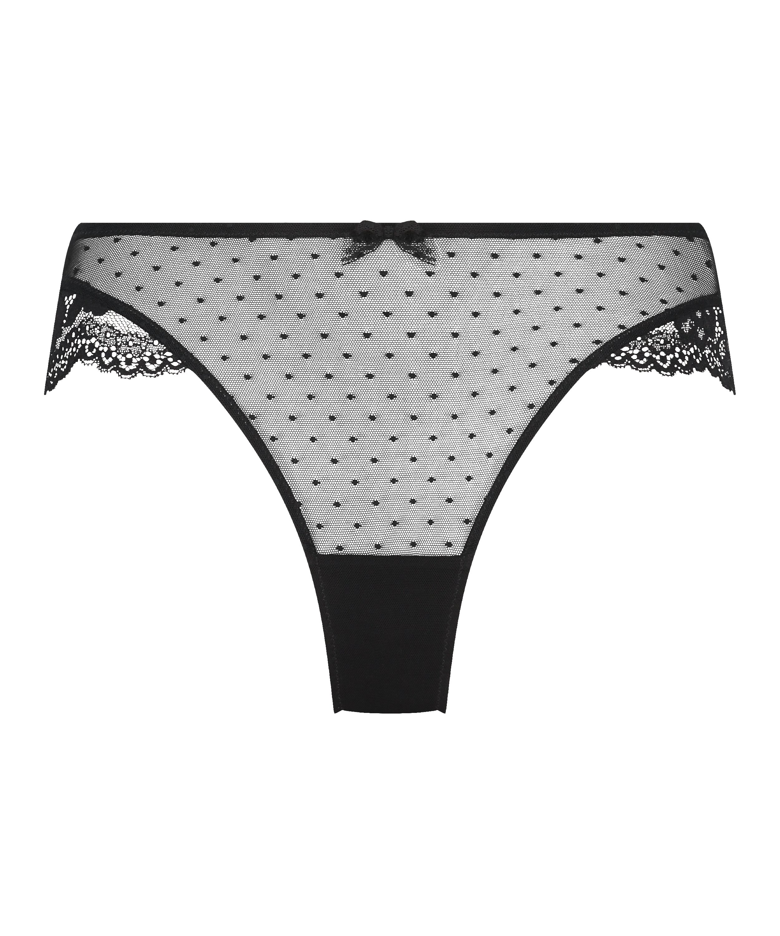 Se fantastisk ud i denne brasilianske trusse! Den har blonder og mesh-detaljer, og sløjfen foran runder den fint af! Kombinér med passende tilbehør for at få et komplet look.