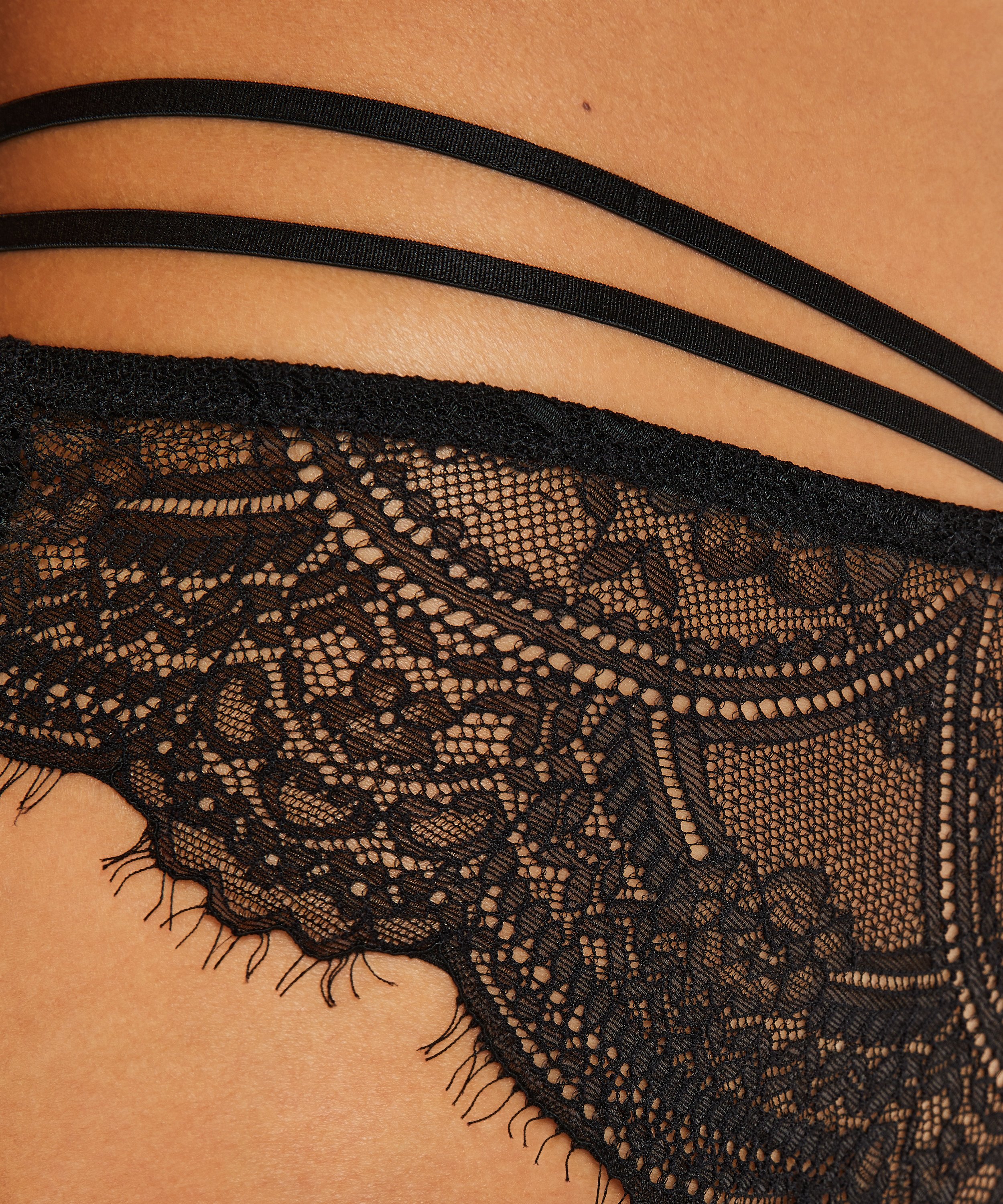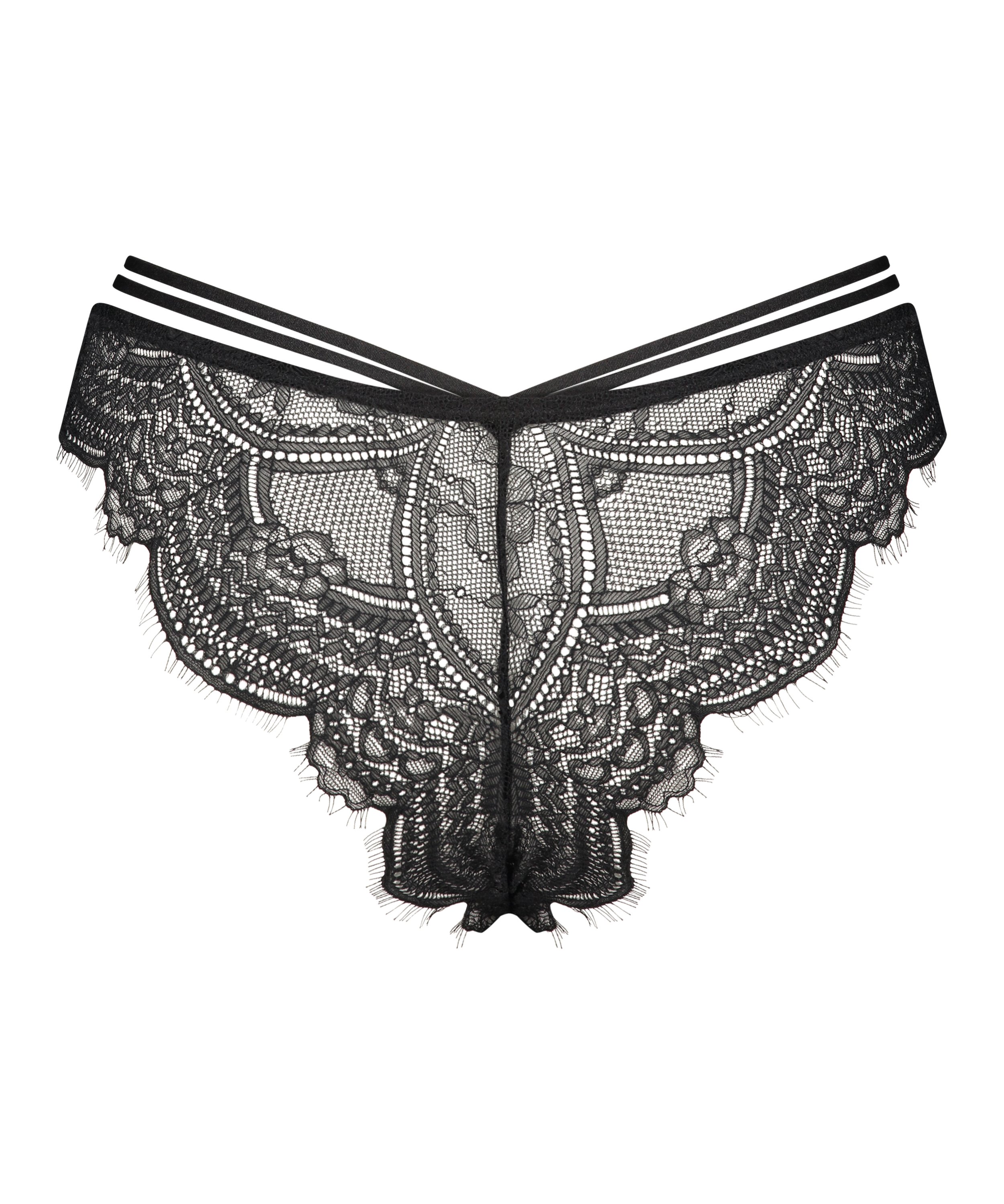 Denne højt udskårne brasilianske trusse er virkelig sej! Trussen er forsynet med stropperinger og får dine ben til at se noget længere ud. Match med en passende bh eller bralette, så du får et sæt!