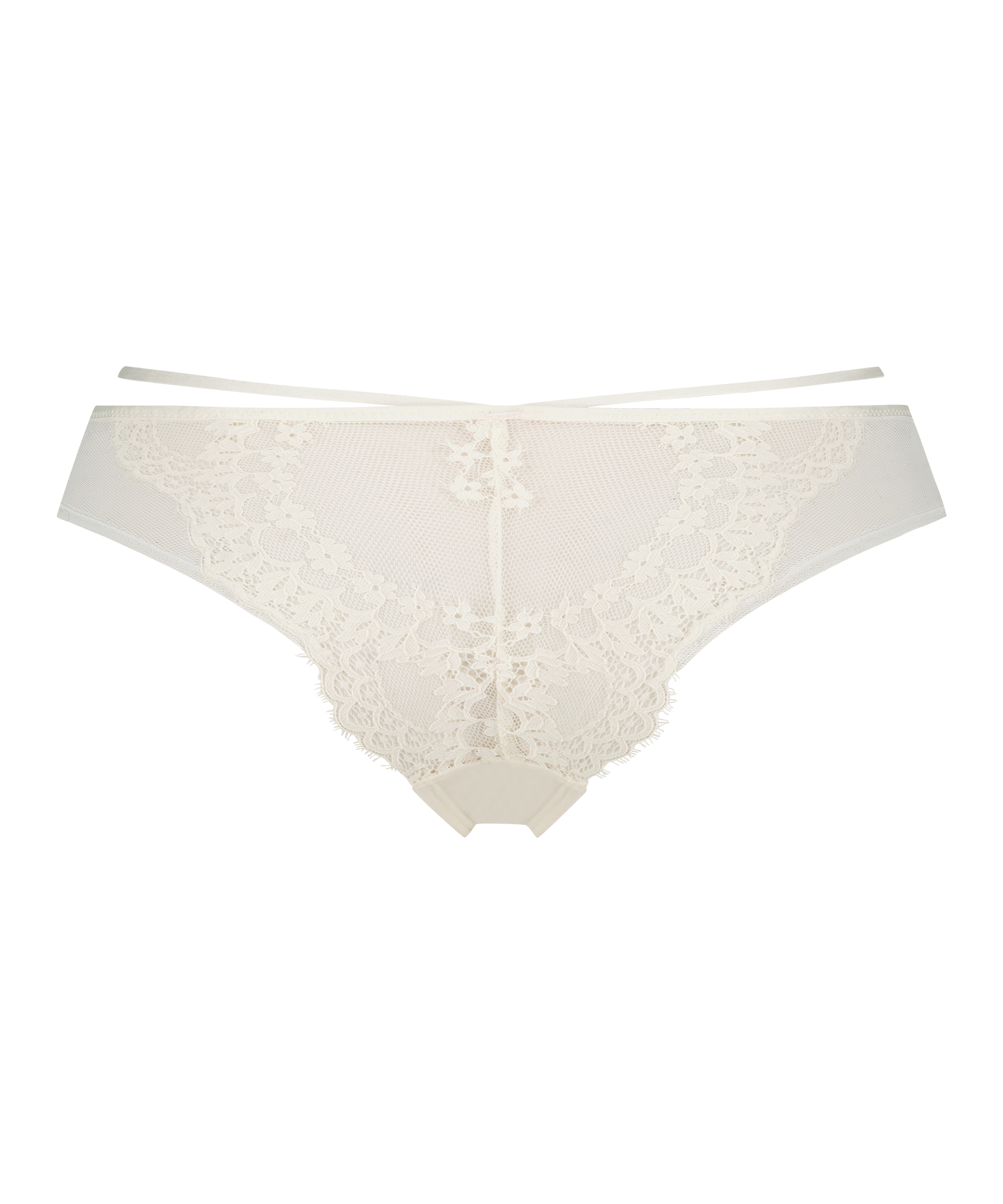 Din dag kan ikke gå galt i denne super feminine brasilianske trusse! Den brasilianske trusse er næsten helt af blonder og med en lille sløjfe foran. Kombiner med matchende tilbehør for at få det komplette look!