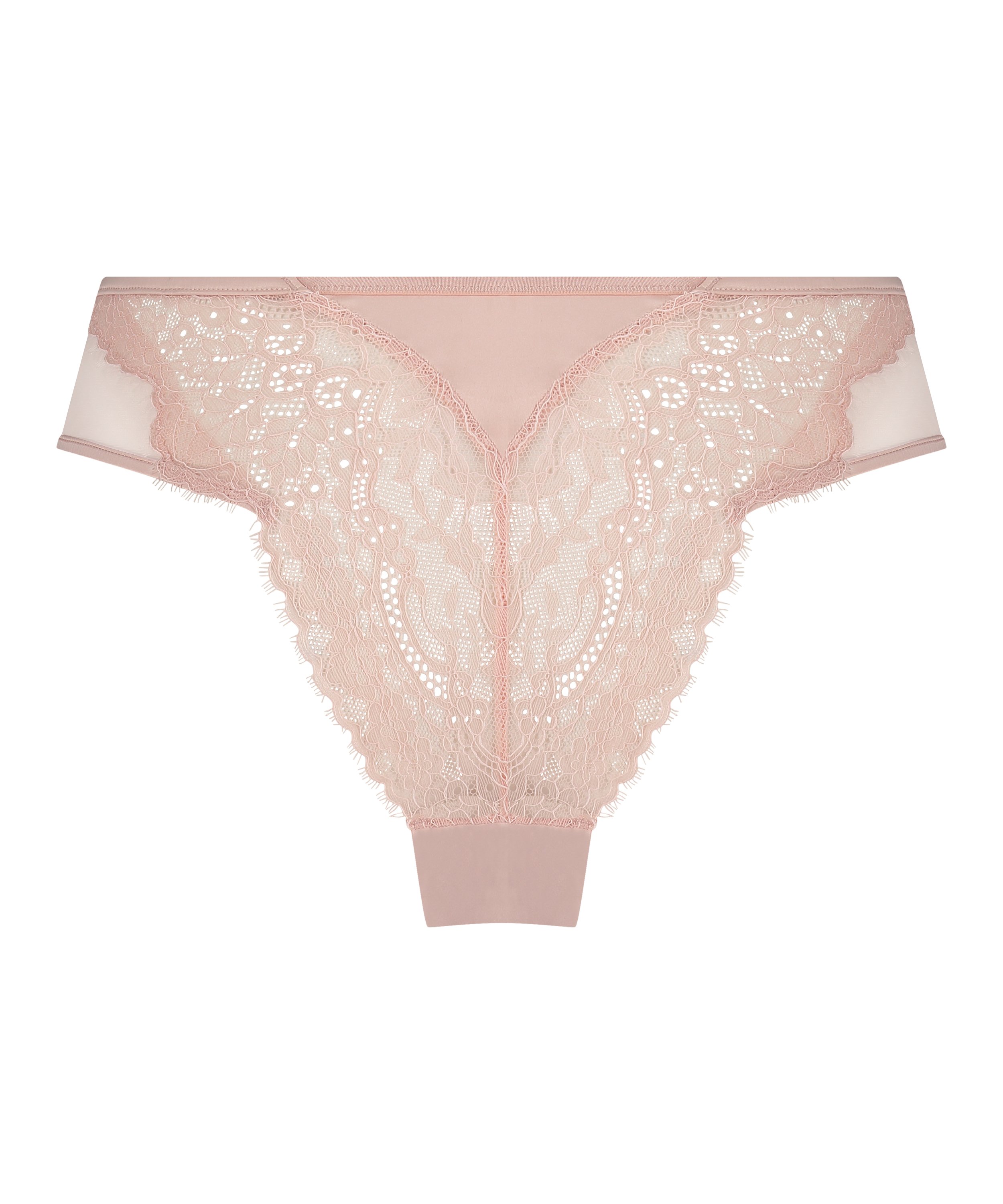 Denne super elegante brasilianske trusse har masser af romantiske blonder og satindetaljer. Sæt den sammen med en matchende bh for at fuldende sættet! En del af vores Noir-kollektion.