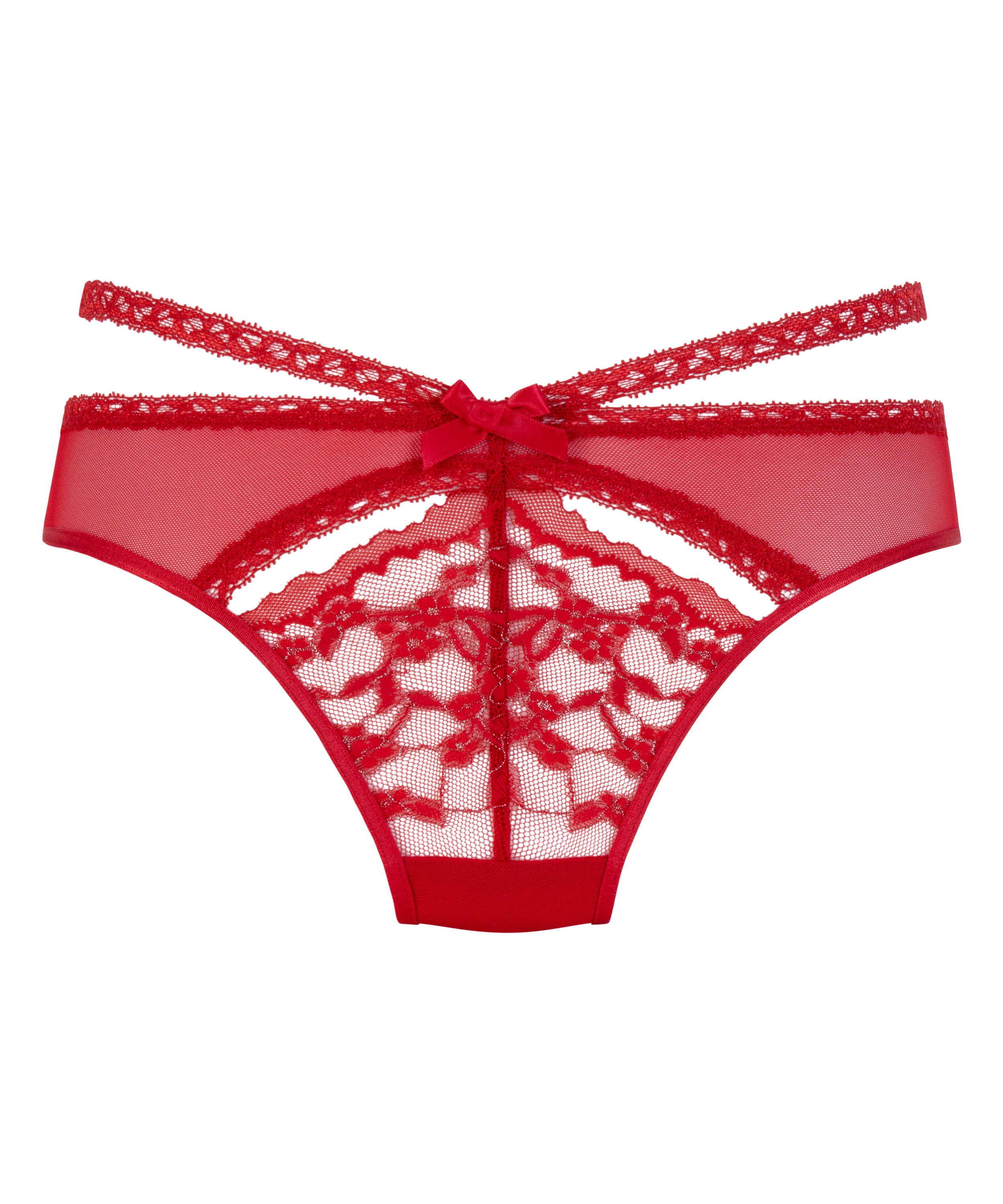 Sæt ekstra krydderi på tingene med denne brasilianske trusse! Denne brasilianske trusse har udskårne detaljer og masser af smukke blonder. Kombiner med matchende dele. En del af vores Private-kollektion.