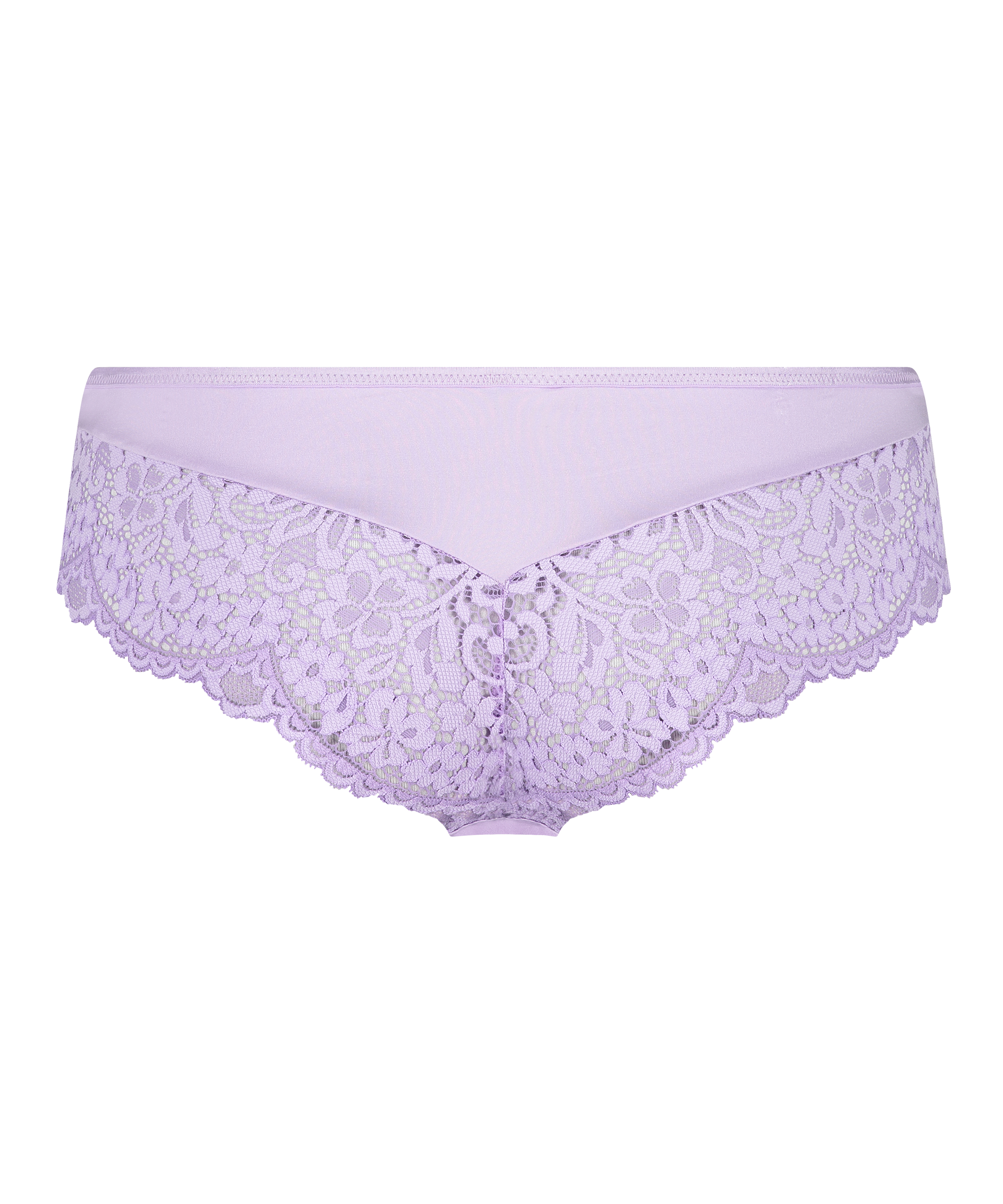 Fuldend dit lingerisæt med denne brasilianske trusse. Den er lavet af blonder og har en flot sløjfe på forsiden. Kombinér med den matchende bh for et komplet sæt!