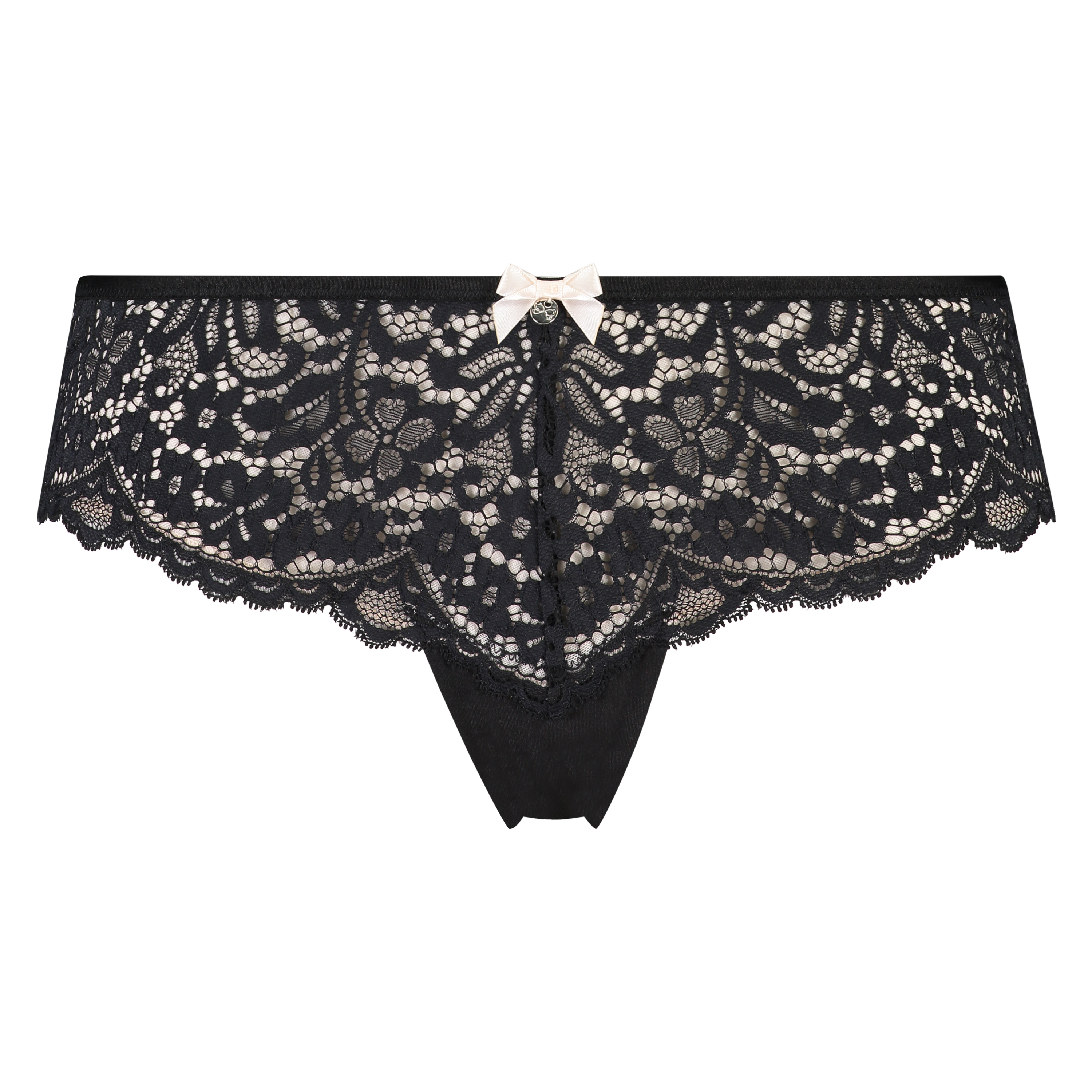 Fuldend dit lingerisæt med denne brasilianske trusse. Den er lavet af blonder og har en flot sløjfe på forsiden. Kombinér med den matchende bh for et komplet sæt!