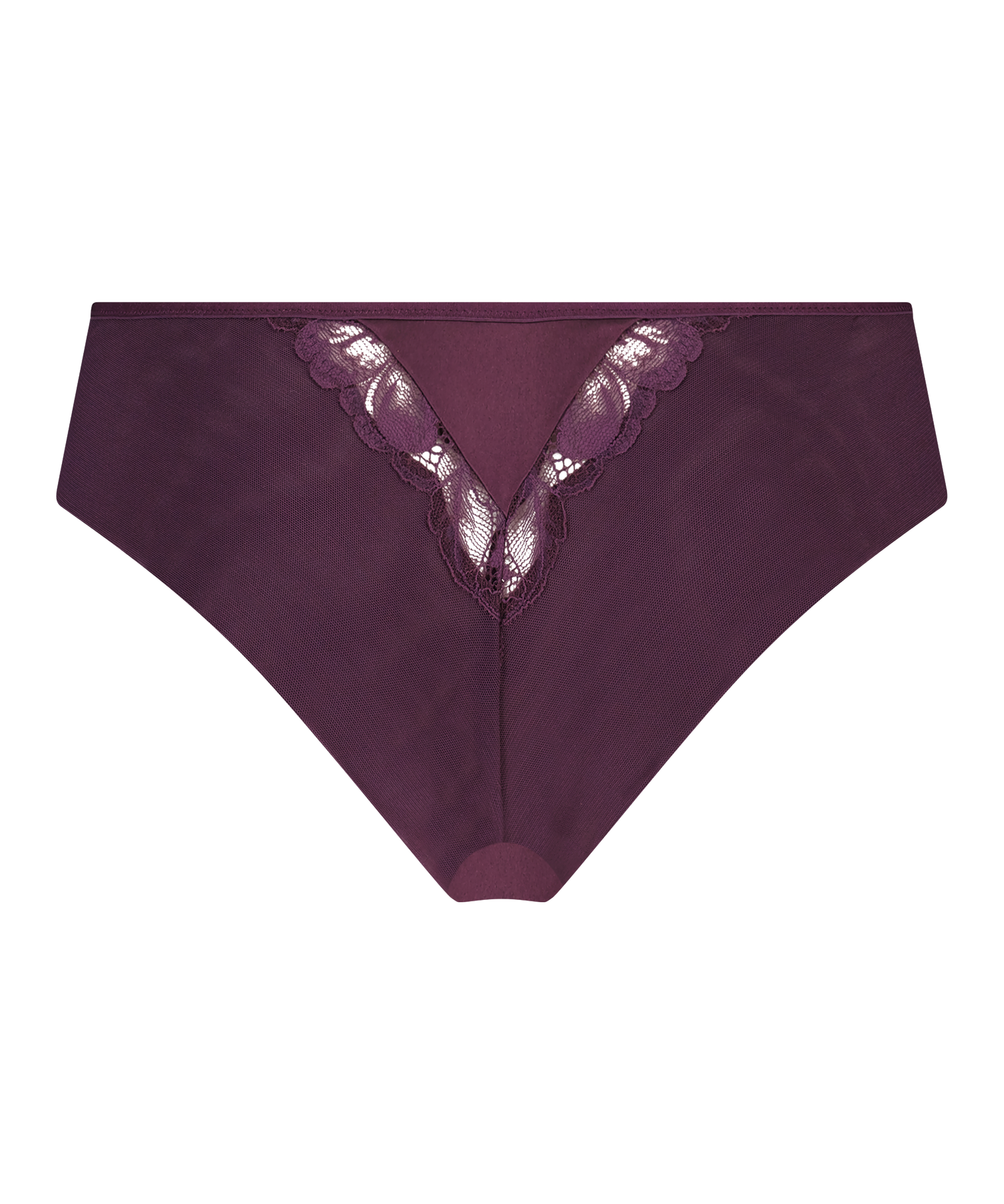 Du vil føle dig fantastisk tilpas i denne superfeminine brasilianske trusse! De brasilianske trusser er dækket af romantiske blonder på forsiden, og bagsiden har satindetaljer. Sæt dem sammen med matchende bh! En del af vores Noir-kollektion!