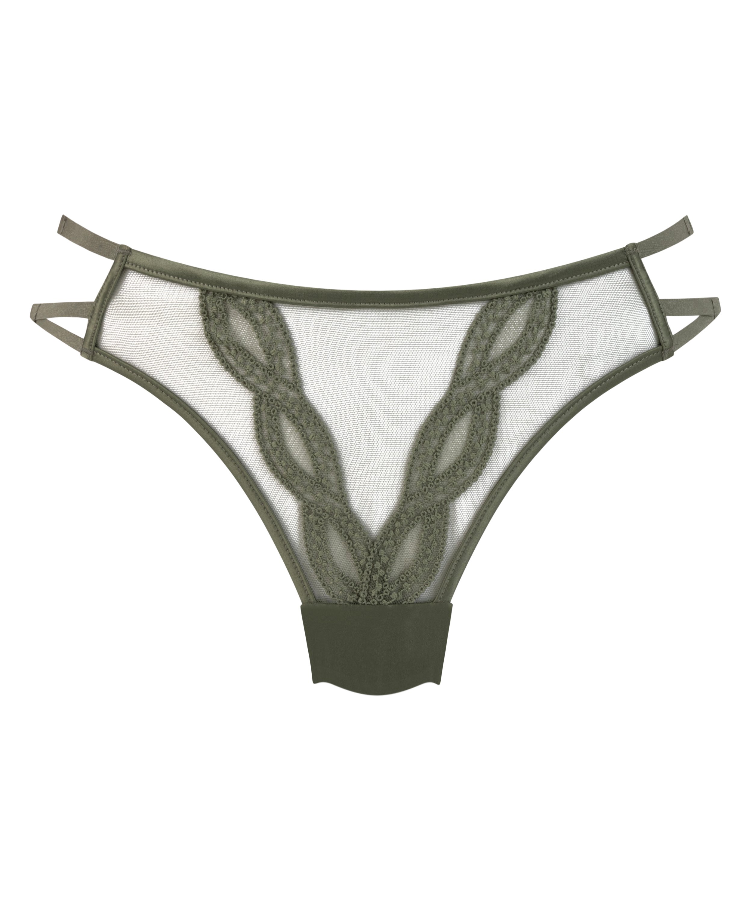 Denne brasilianske trusse er designet til at forføre med en dristig rygudskæring og delikate meshdetaljer. Den er lavet af et blødt, strækbart stof og giver en flatterende pasform, mens den tilføjer et frækt, forførende touch. En perfekt blanding af komfort og vovet elegance til din lingerikollektion.