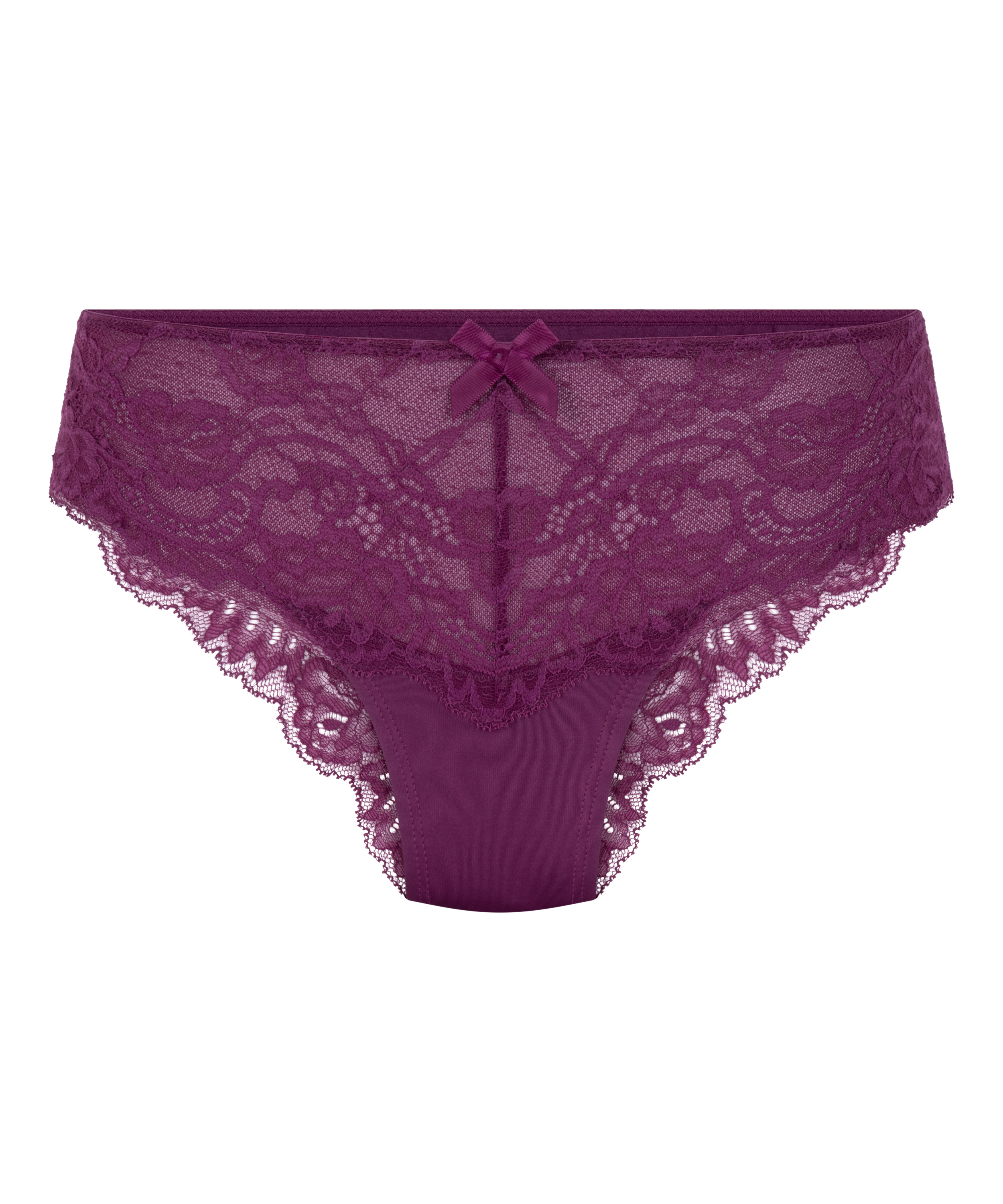 En brasiliansk trusse du bare må have! Denne trusse har blondedetaljer bagpå og en sløjfe foran. Kombinér med en passende bh og få et komplet lingerisæt!
