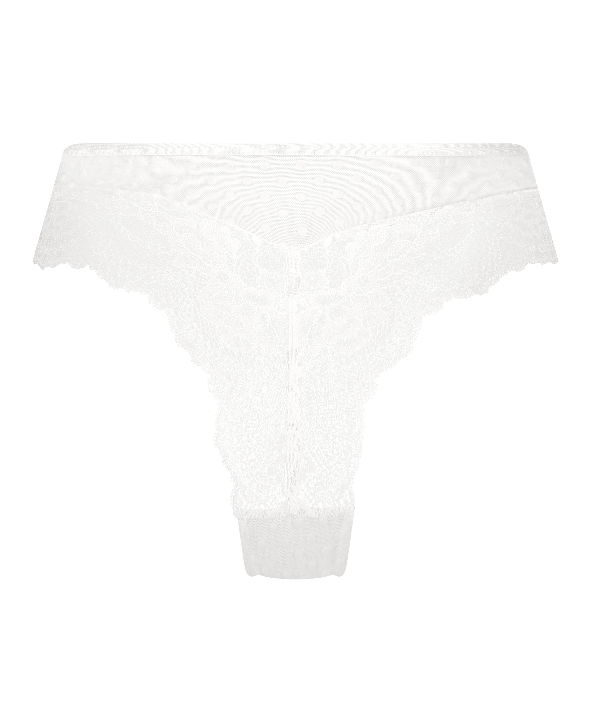 Denne brasilianske trusse er bare sød! Den indeholder både blonder og mesh og har en sød sløjfe foran. Kombiner med din yndlings-bh for at få et sødt sæt!