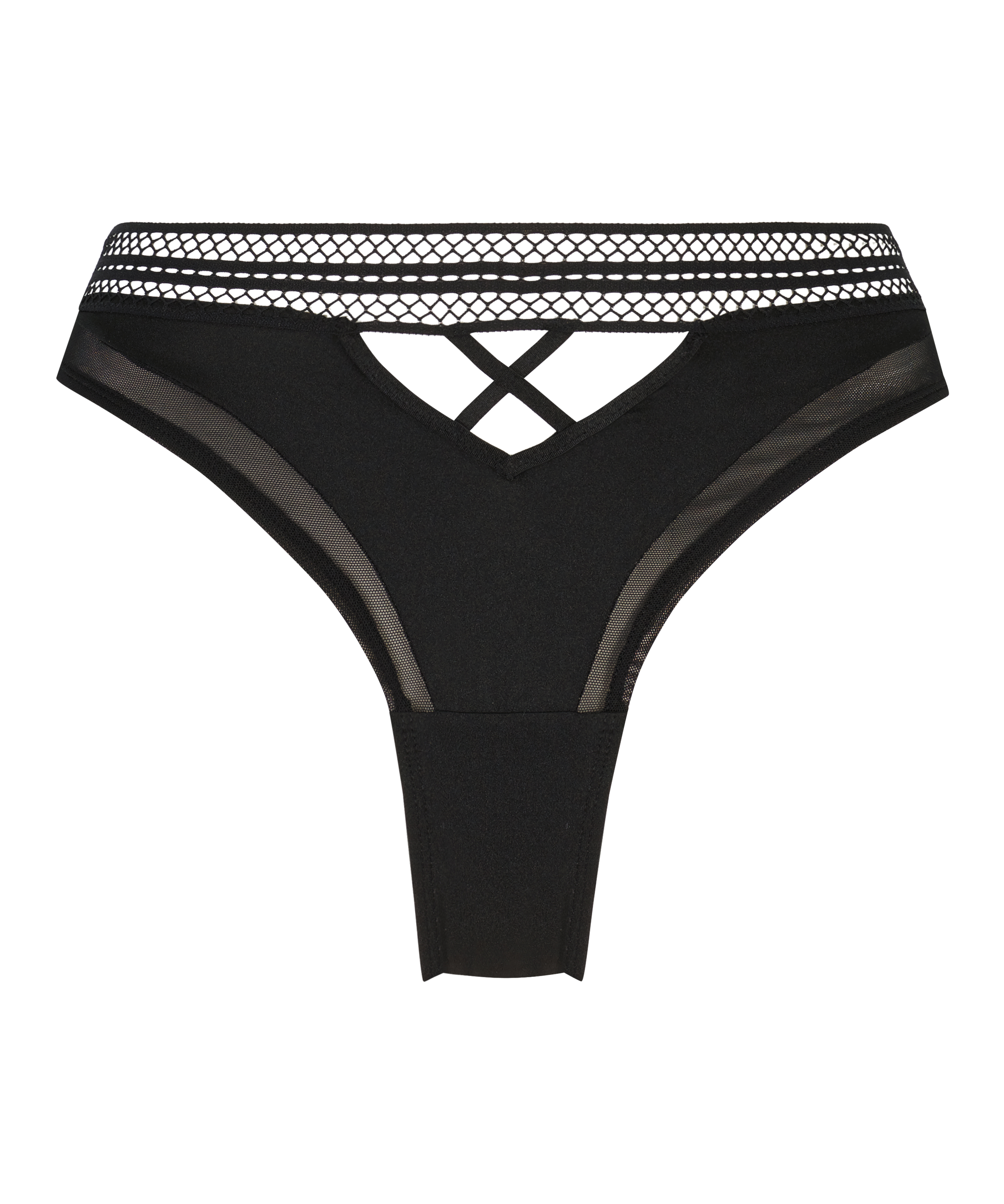 Denne sexede brasilianske trusse er alt hvad du behøver og mere til. Med mesh-materialer foran og bagpå, og taljebånd med et sexet fiskenet-look. Sæt den sammen med en matchende bh for at fuldende looket!