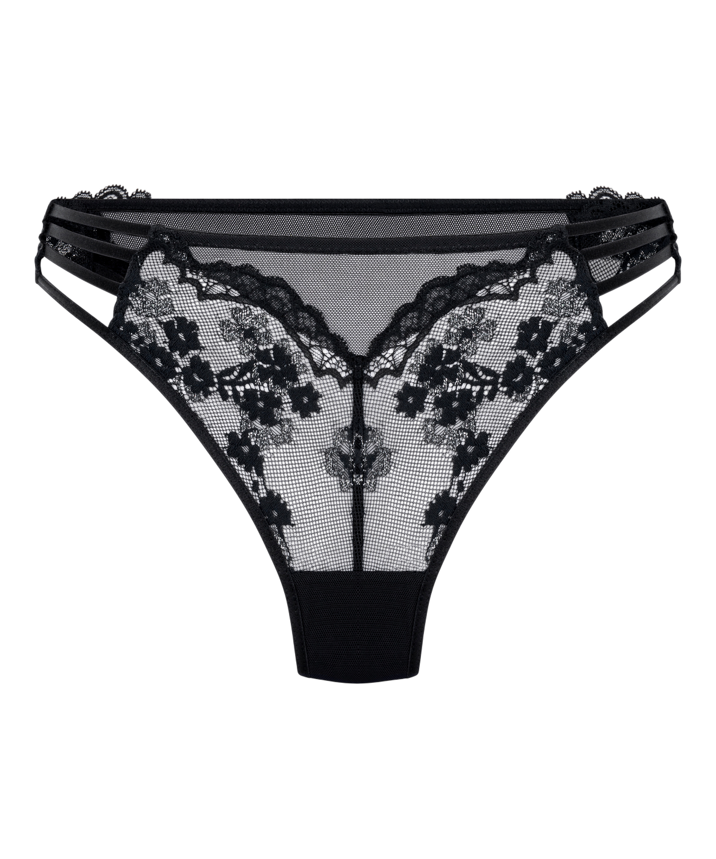 Skru op for selvtilliden med denne blondetrusse – hvor elegance møder kant. Den er lavet af blødt, strækbart blondestof og har indviklede udskæringsdetaljer i siderne, der giver et dristigt, men sofistikeret look. Fuldend looket med din yndlings-bh.