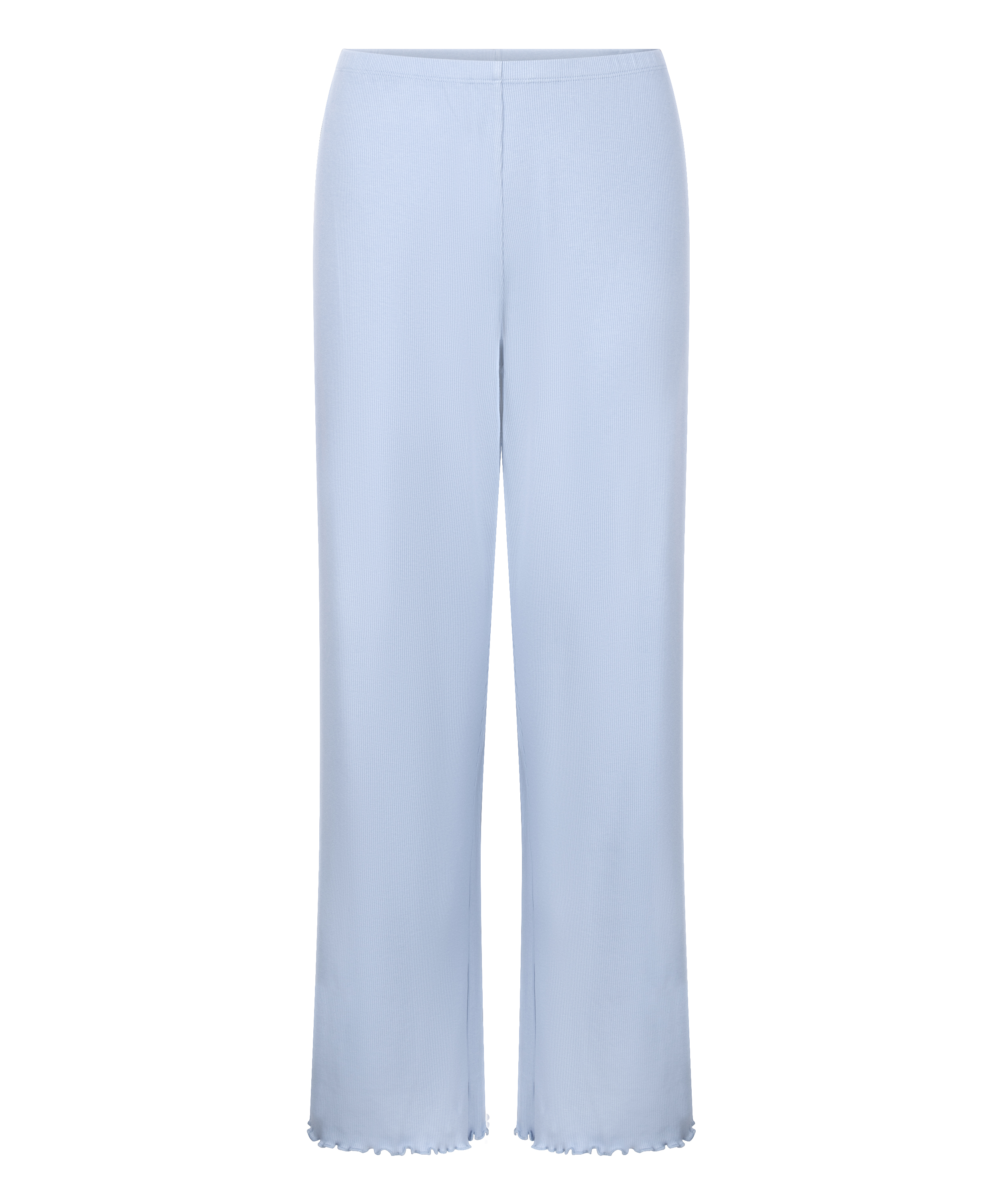 Slap af i stil med vores pyjamasbukser, der er lavet af blødt stof med en let ribbet tekstur, der giver en behagelig følelse. Disse bukser er designet med komfort i tankerne og tilbyder en afslappet pasform, der følger dine bevægelser – perfekt til afslapning, søvn eller rolige morgener. Sæt dem sammen med den matchende top for at fuldende looket!
