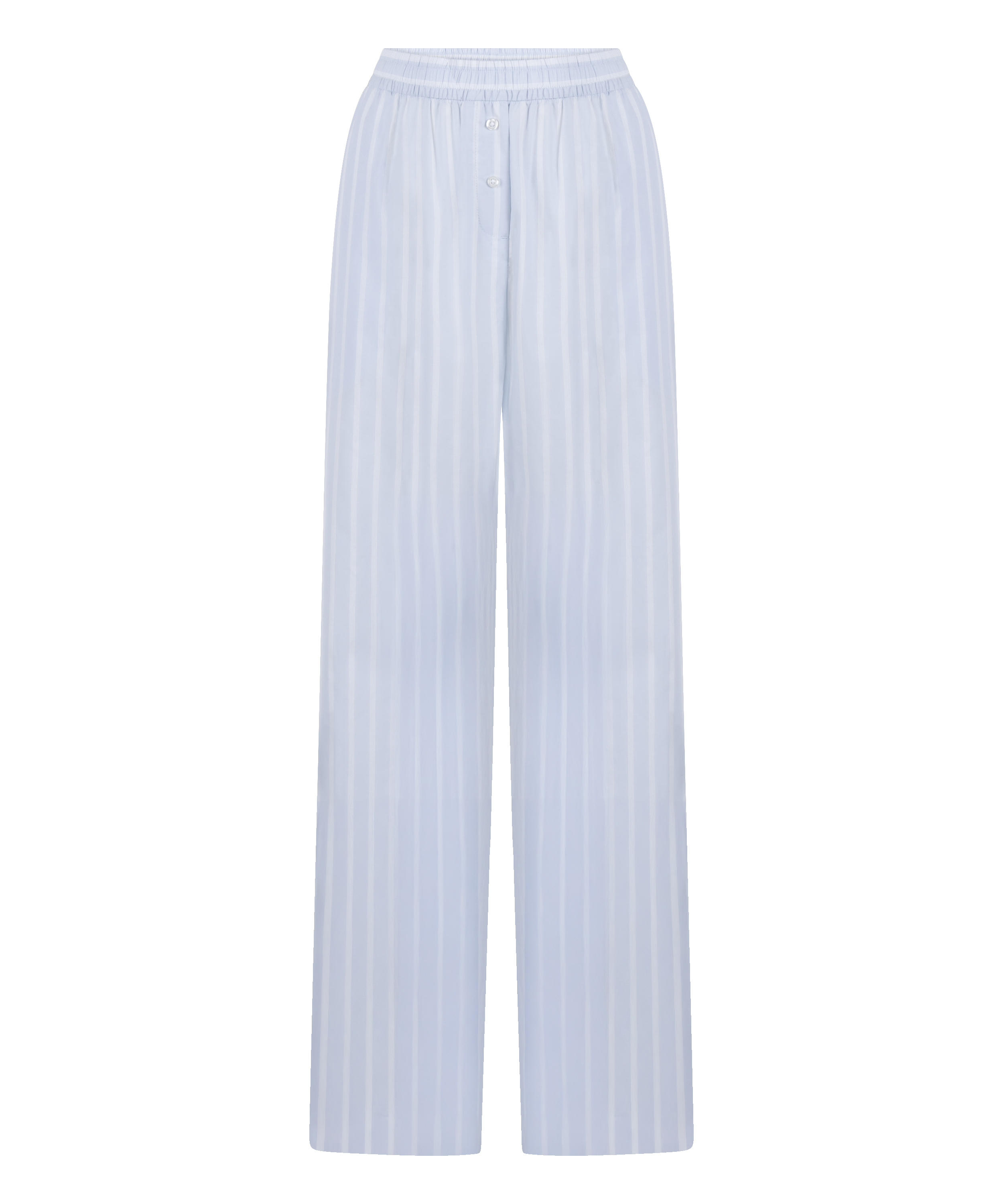 Træk i hyggelig komfort med disse stribede bomuldspyjamasbukser, designet til drømmende nætter og dovne morgener. De er lavet af blød, åndbar bomuld og har en afslappet pasform og en elastisk linning for ultimativ komfort. Det legende stribemønster tilføjer et strejf af sjov til din nattøjsstil, hvilket gør dem perfekte til stilfuld afslapning. Ideel til elskere af behageligt loungewear, søde pyjamassæt og bomuldsnattøj. Kombiner dem med den matchende jakke!