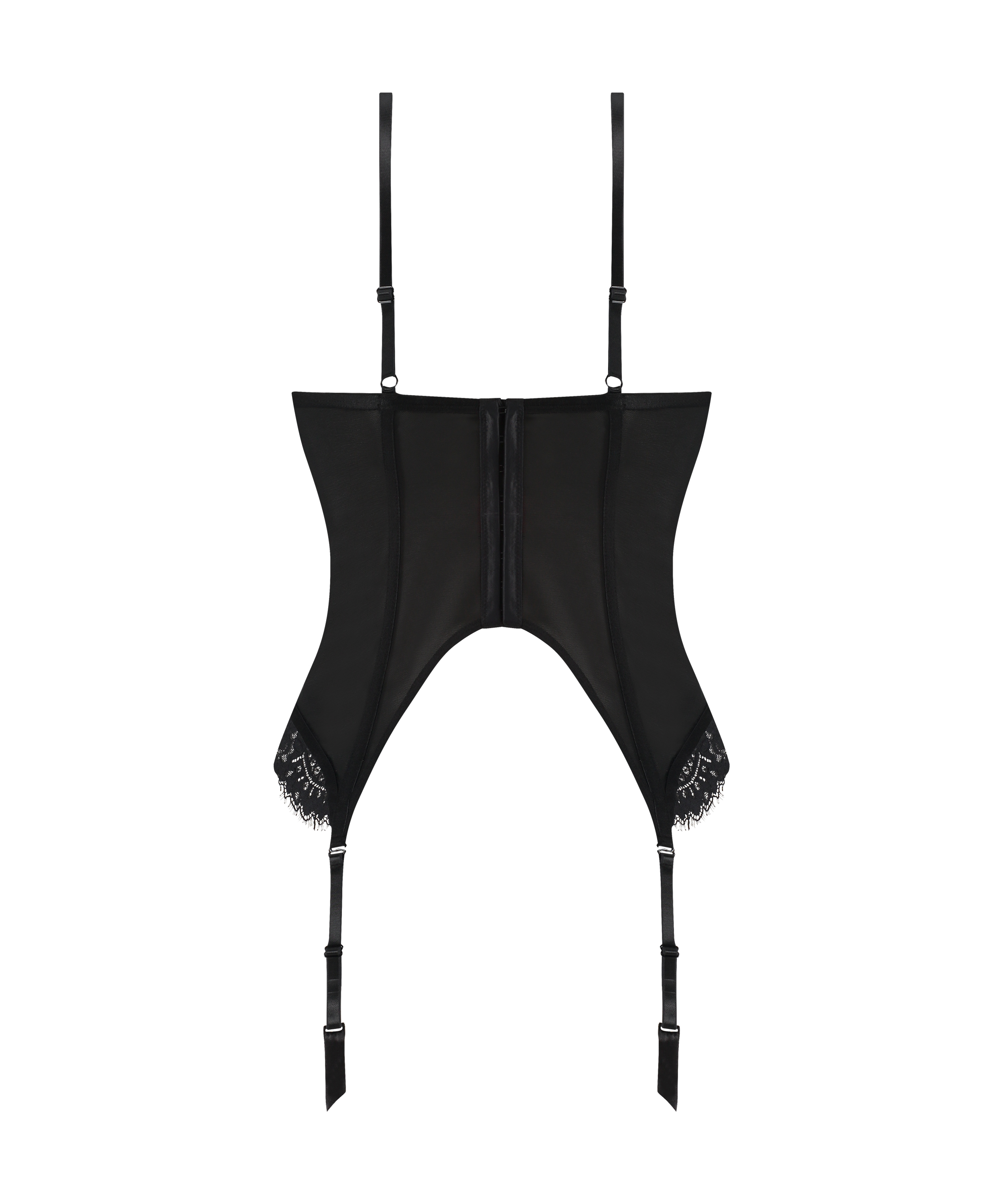 Skab et elegant look med den betagende bustier! Der er masser af gennemgående blonder og stivere både foran og bagpå for ekstra komfort. Den har også trikotagekroge, så du kan style den med dine favoritstrømper. Sæt bustieren sammen med en kimono og trikotage for at fuldende et betagende look.