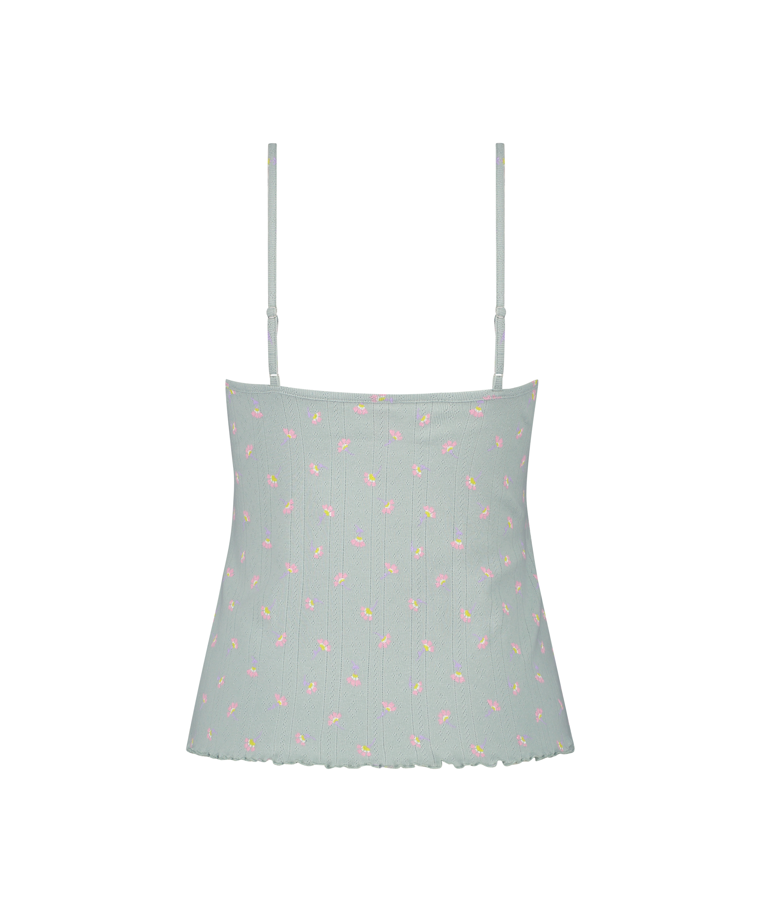 Føl dig supersexet og feminin, når du har denne top på! Toppen er lavet af bomuld og har justerbare spaghetti-skulderstropper. Kombiner med matchende shorts for at få det komplette sæt.