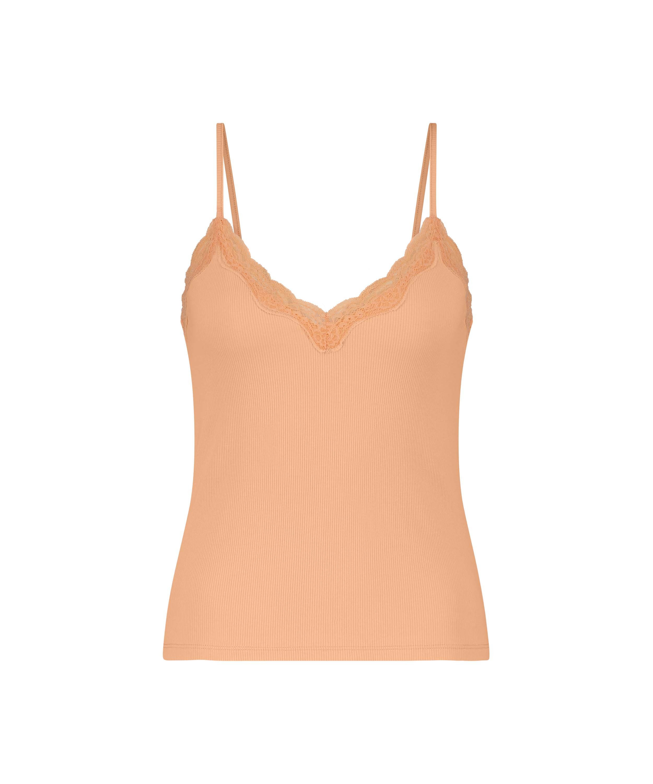 Cami Rib Lace top - Lyserød
