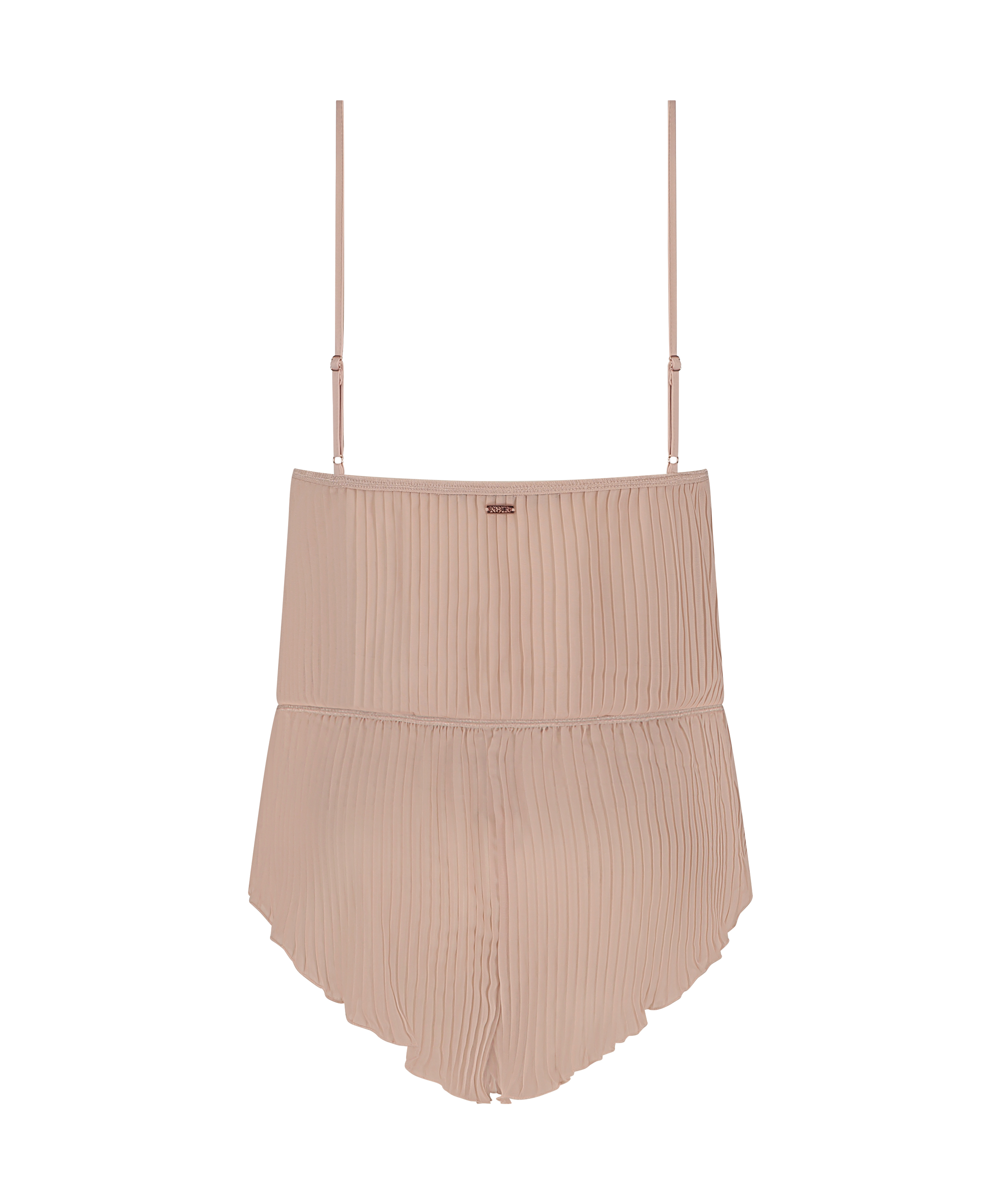 Se smuk ud i dette dejlige pyjamassæt! Dette søde plisserede chiffon cami-sæt indeholder blonder og har tynde spaghettistropper. Del af Noir-kollektionen.