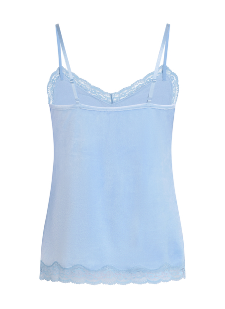 Føl dig supersexet og feminin med denne bløde top på! Toppen er lavet af et velourstof og forsynet med blonder. Sæt den sammen med matchende items.