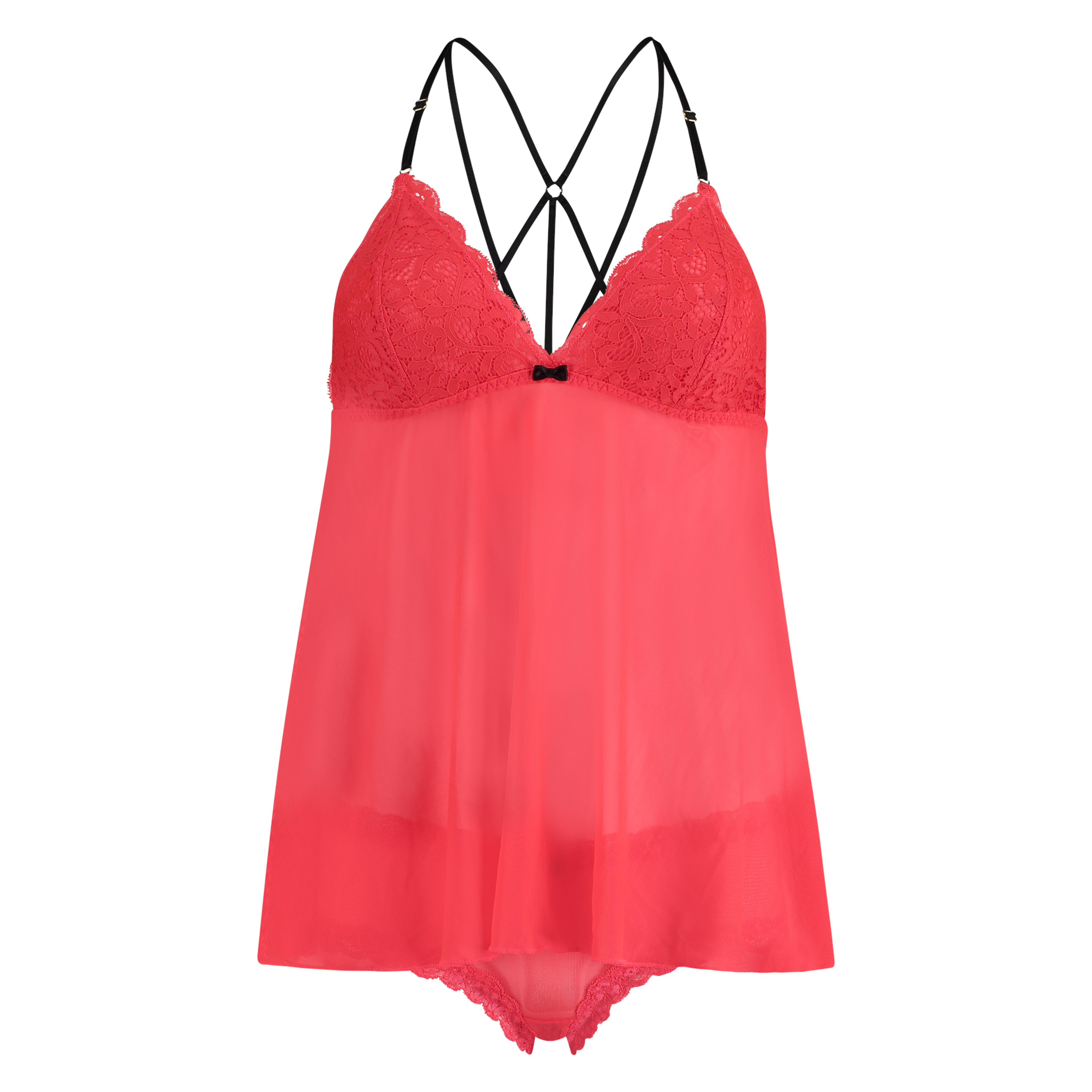 Dette camisæt er sexet og superfeminint! Toppens åbne forstykke giver modellen et frækt twist. Sættet har søde blondedetaljer.
