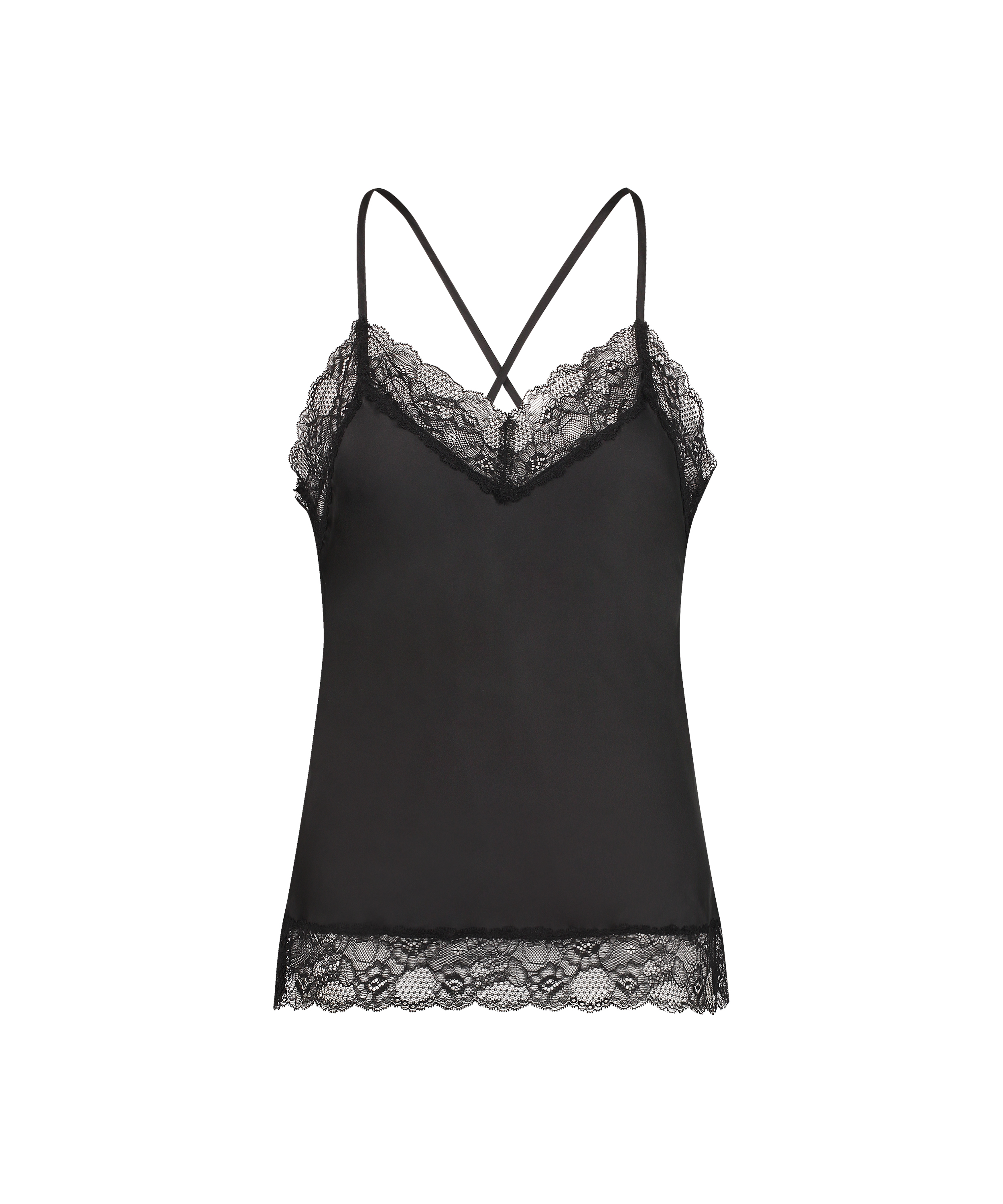 Denne top er udført i smukt satin. Foroven er den forsynet med blonder. Båndene på ryggen kan justeres. Sæt den sammen med passende items til at runde sættet af!