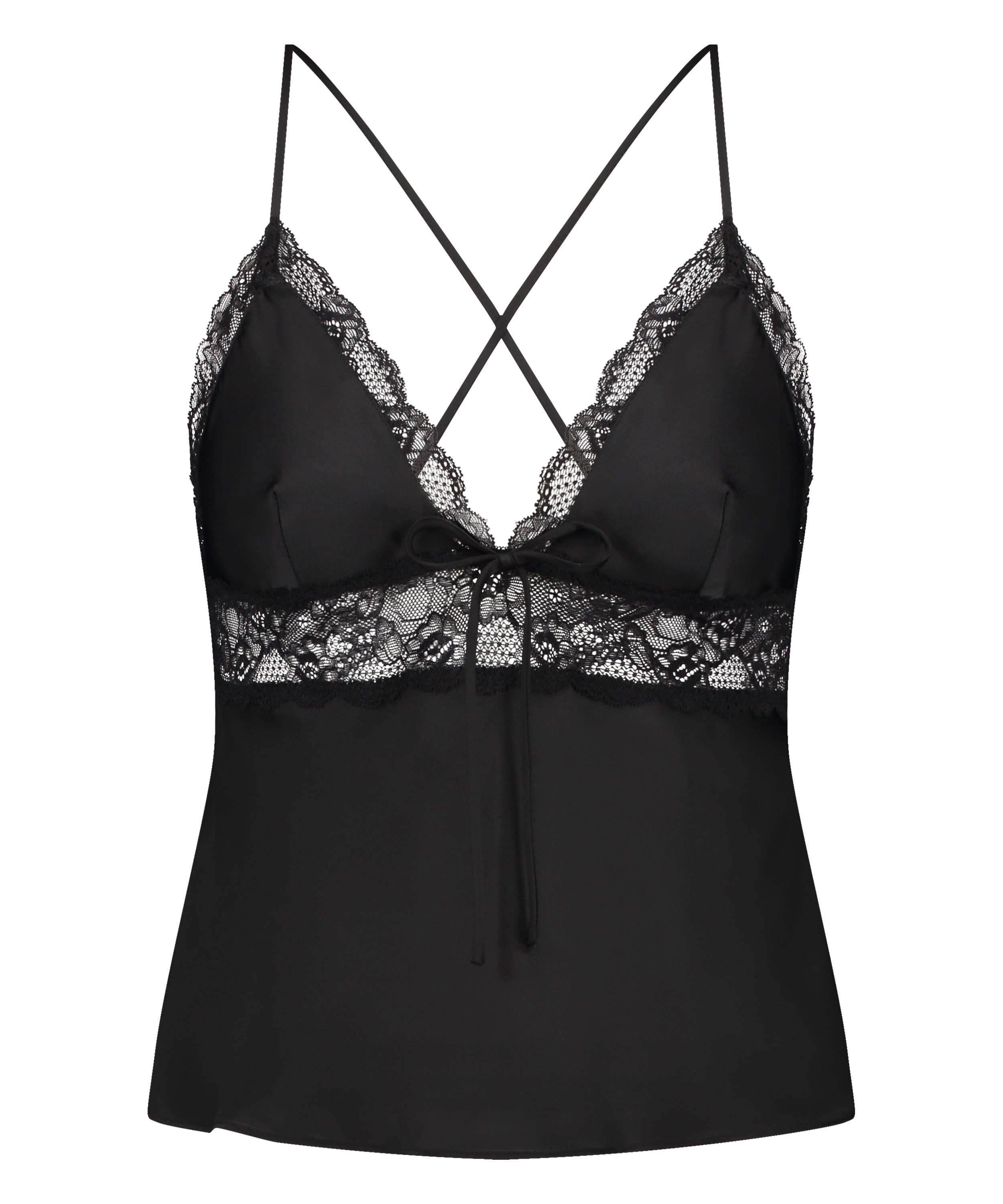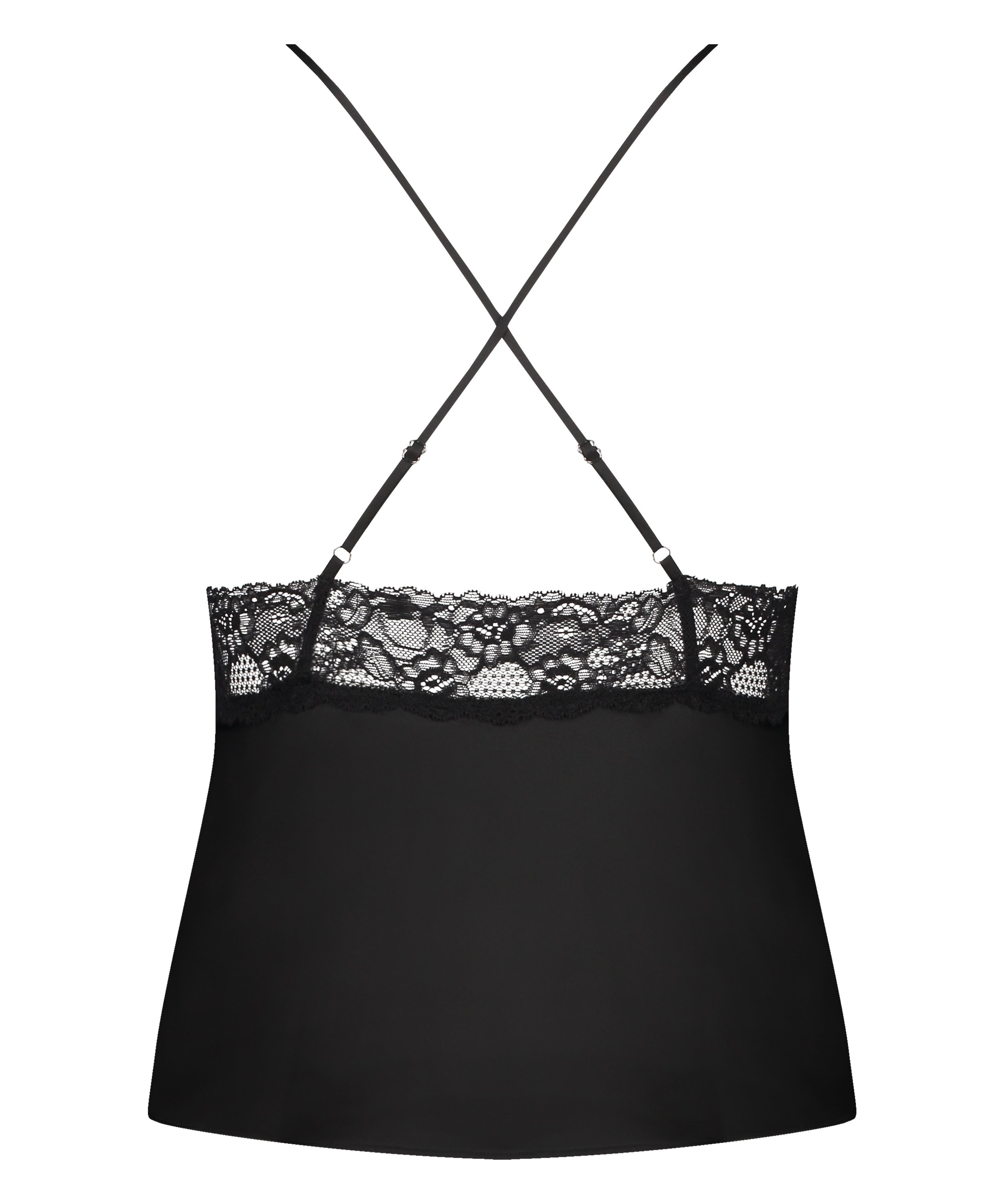 Denne sexede cami er lavet af satin og afsluttet med blonder. Stropperne kan justeres. Opgrader din natgarderobe med en matchende del!