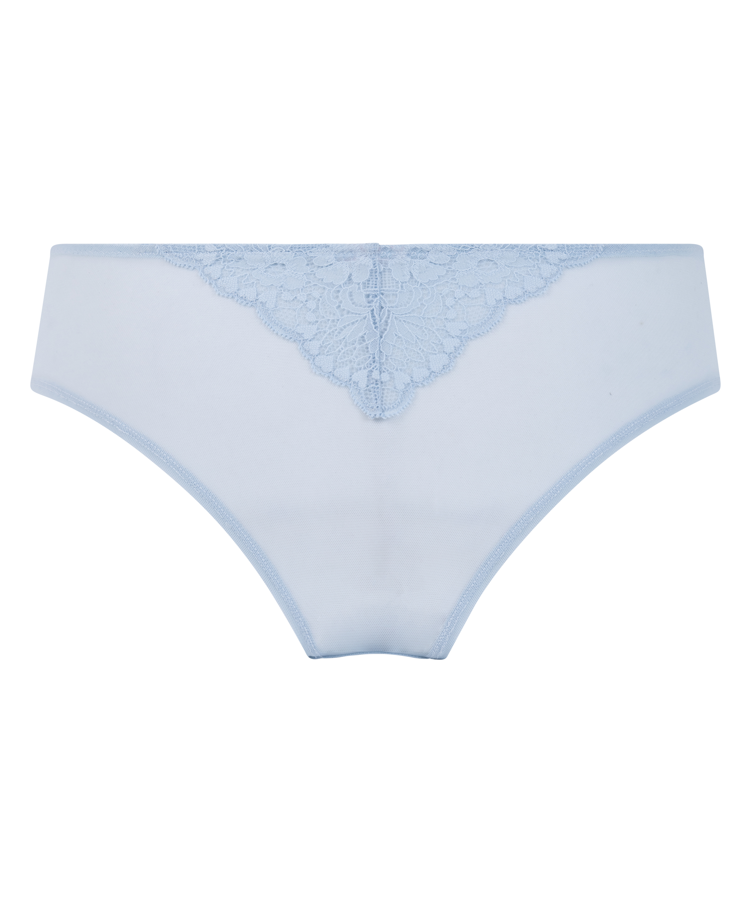 Træk i elegance med vores brasilianske trusse. Denne udsøgte trusse har delikate blonder både foran og bagpå, hvilket skaber et look, der er lige dele romantisk og forførende. Tilføjelsen af gennemsigtigt mesh forbedrer dens moderne appel, mens sløjfen foran tilføjer et frækt, feminint touch.