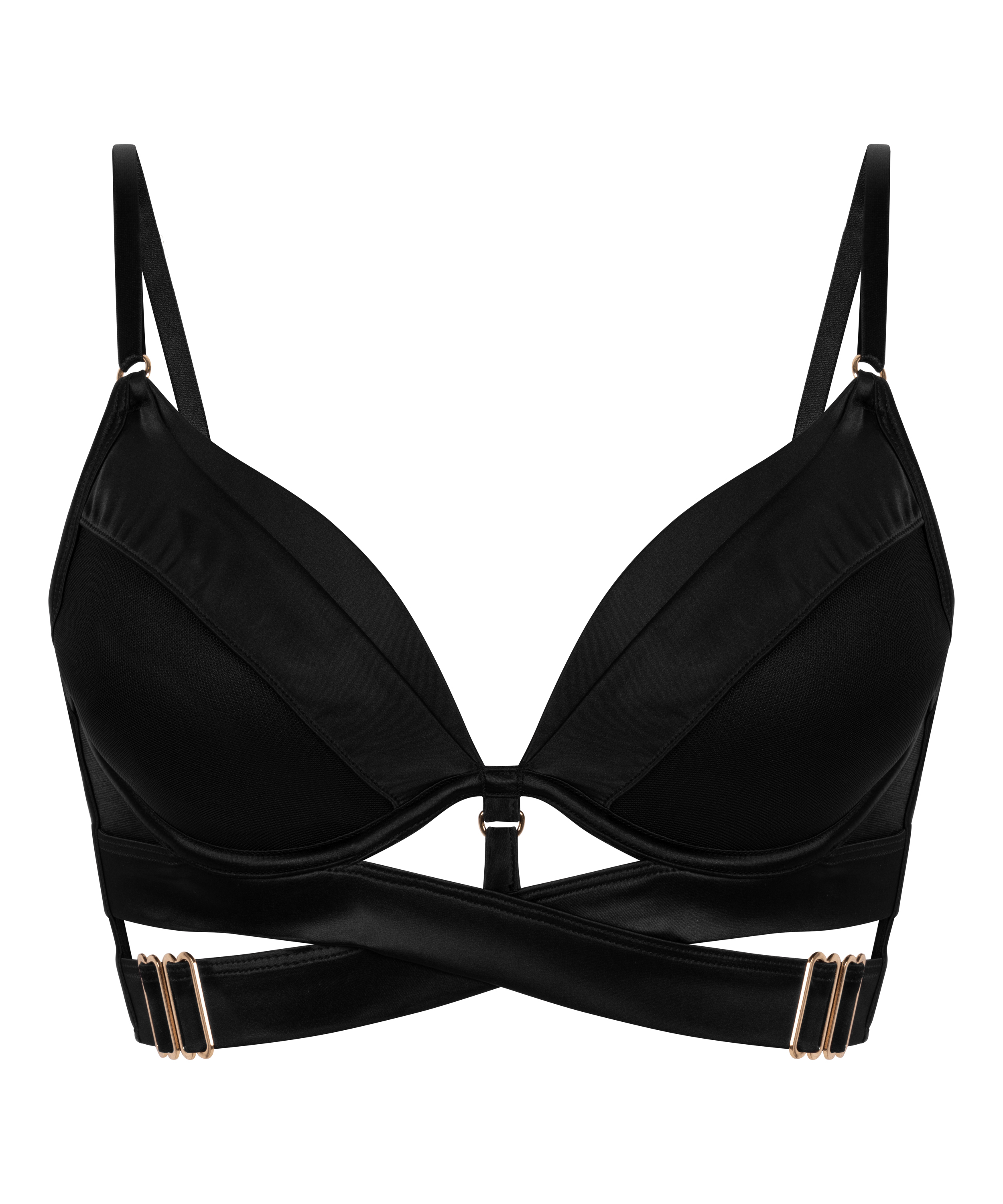 Løft din lingerikollektion til nye højder med denne uimodståeligt forførende push-up bh! De silkebløde polstrede skåle med mesh-stof forbedrer din form, mens bånd under brystet med fine detaljer med metalløkker tilføjer et vovet touch. Et bredt bånd under brystet og tredobbelt kroglukning giver ultrastøttende komfort for en fejlfri pasform!