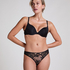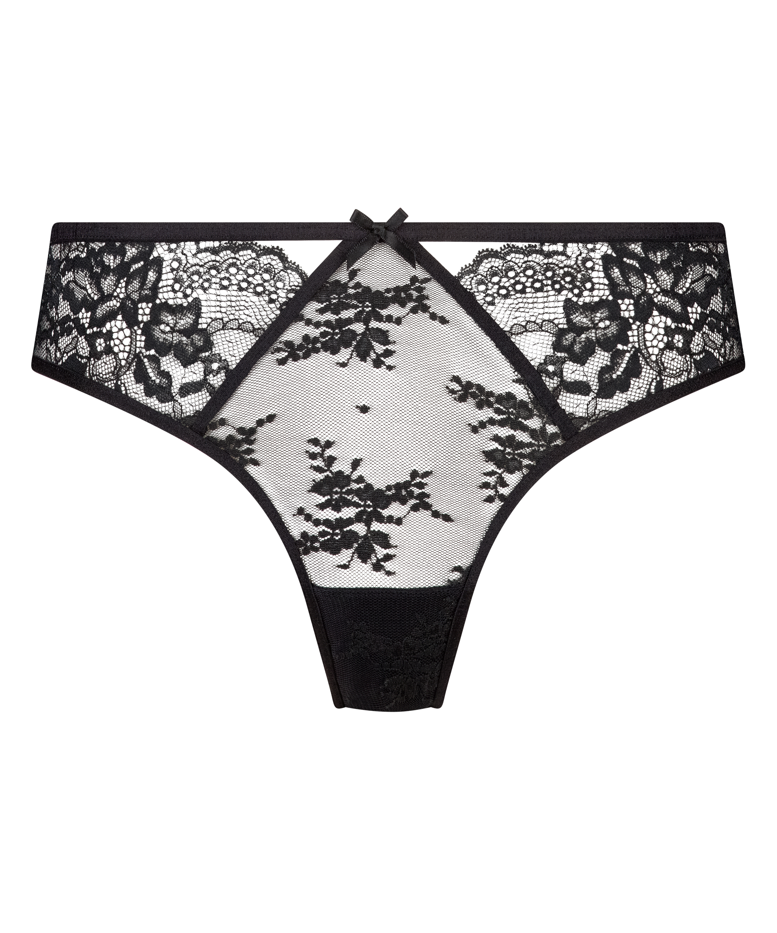 Tilføj et strejf af fræk elegance til din lingerikollektion med vores brasilianske trusse. Denne udsøgte g-streng har delikate blonder, der omfavner dine kurver, mens en charmerende sløjfe og vovede udskæringsdetaljer skaber et moderigtigt look.