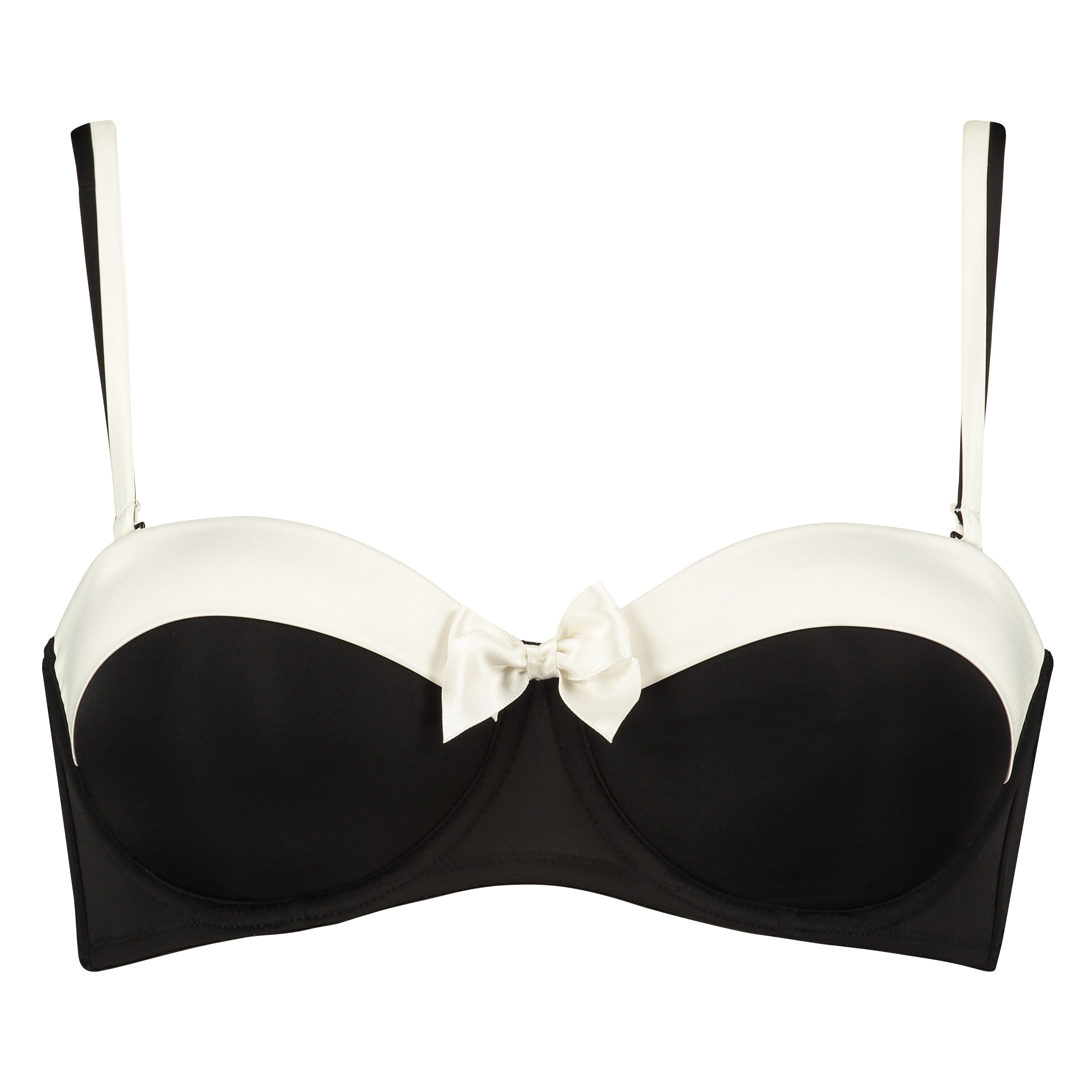 Få et sødt look med denne formstøbte bøjle-bh. Skålene er beklædt med et blødt stof foroven. Med ferskenfarvet sløjfe mellem skålene og med dobbelte skulderstropper.