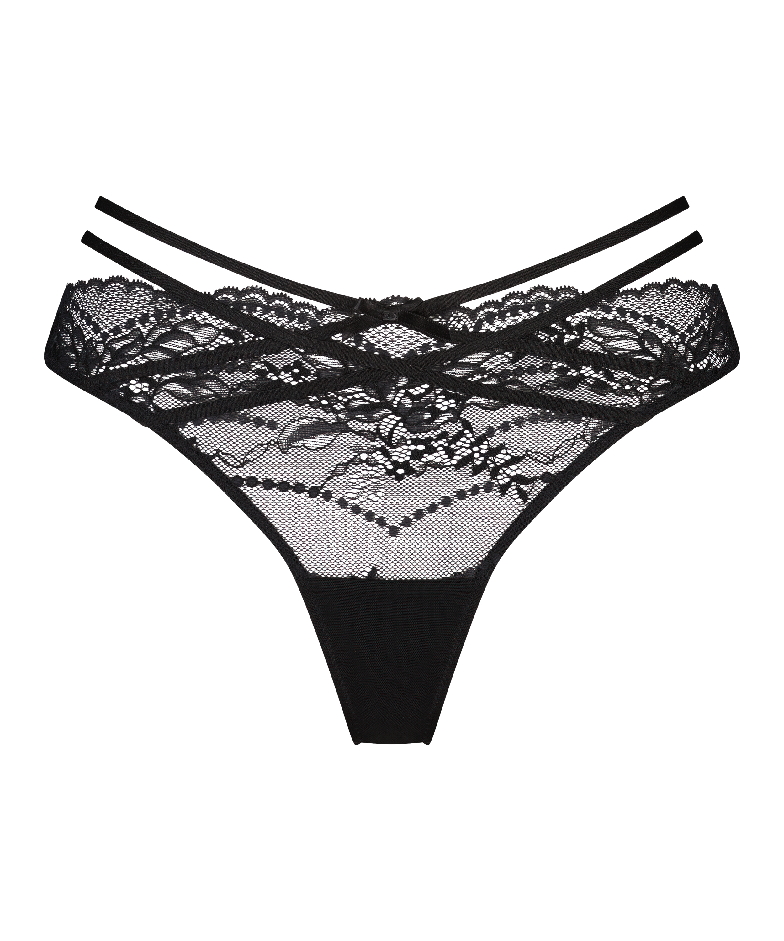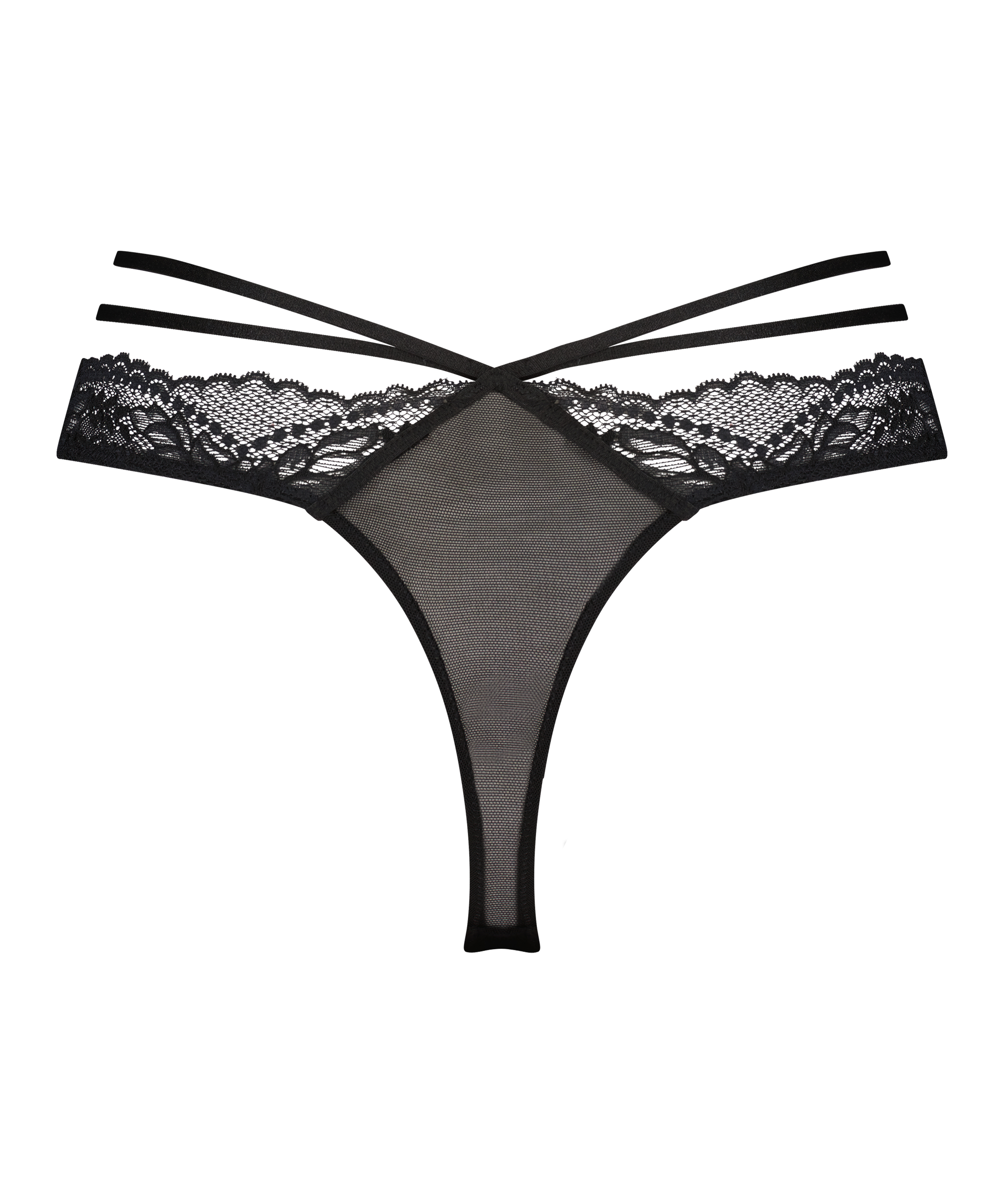 Gå ikke glip af denne betagende g-streng! Den har et semi-transparent look foran med broderet design. Sammen med stropper foran og i siden for et ekstra sexet look. I skridtområdet er den lavet af et blødt materiale for den bedste komfort. Fuldendt med en sød sløje foran. Mix and match med en bh!