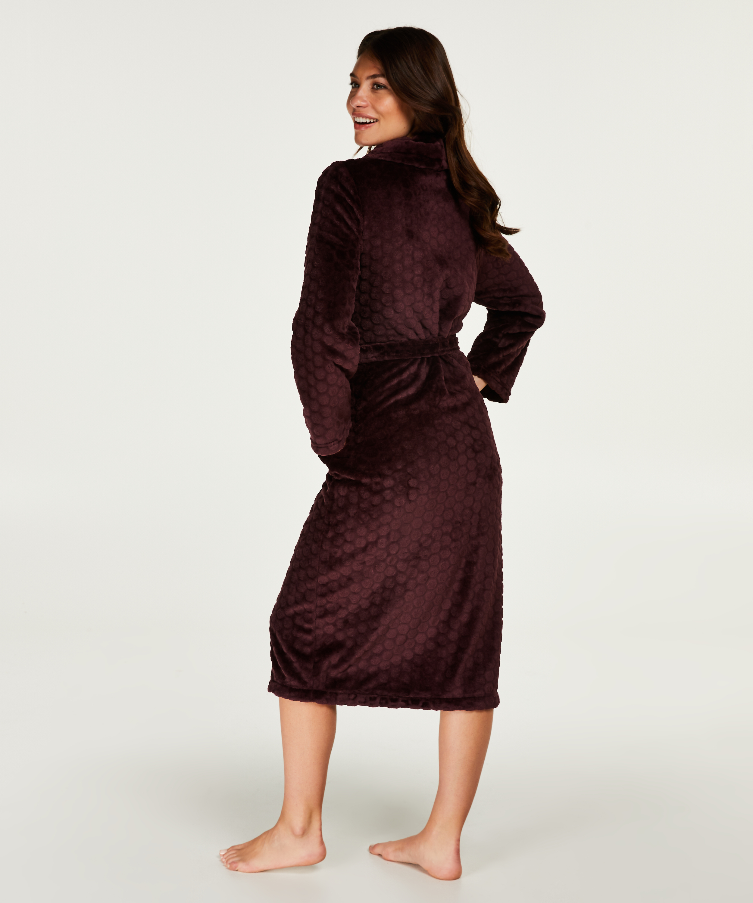 Dejlig blød badekåbe! Denne lange model går til under knæet. Med slå-om-lukning og stiklommer.