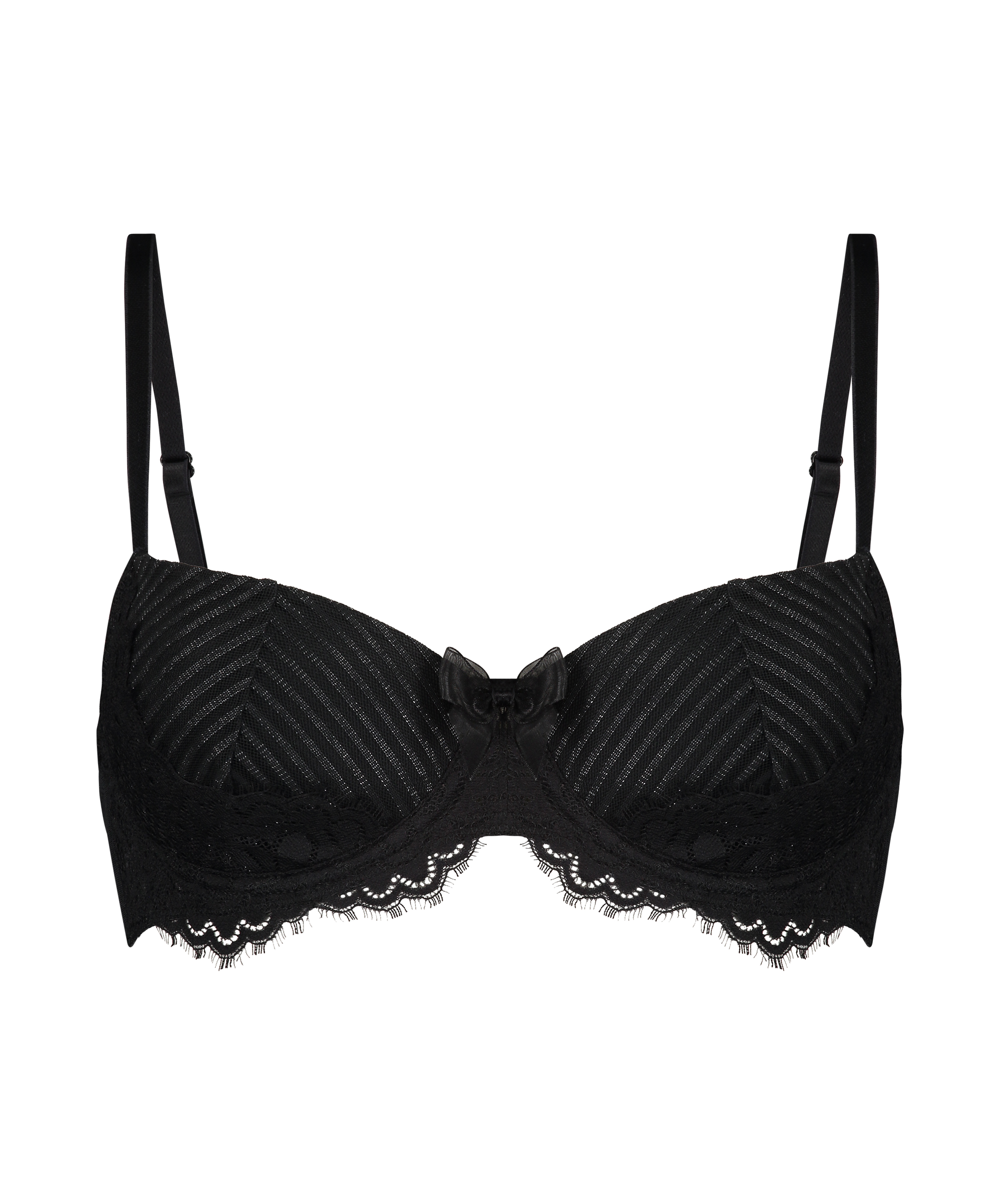 Denne formstøbte bøjle-bh er forsynet med blonder i et yndigt skinnende stribe-design. Sæt den sammen med matchende items!