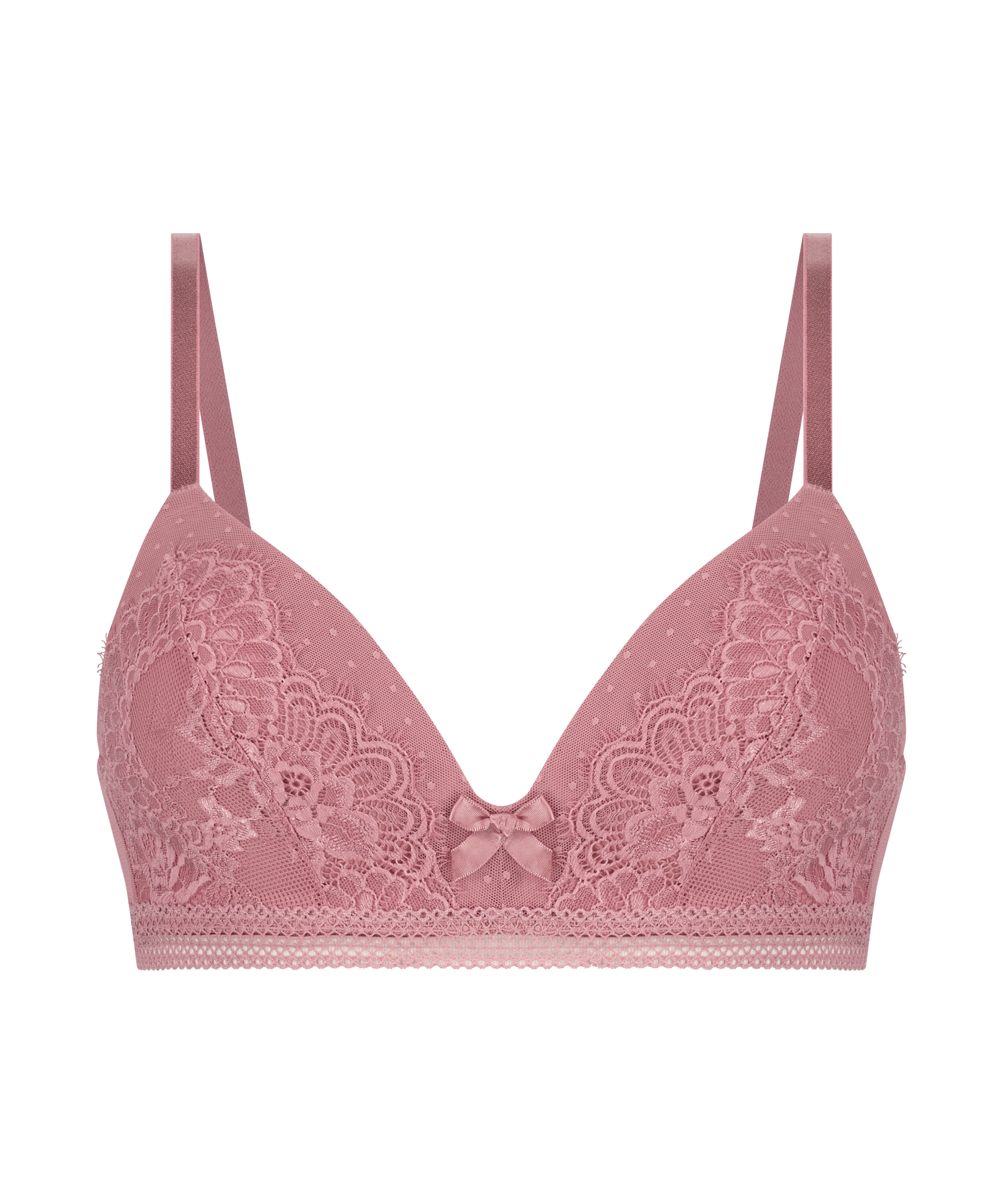 Denne dejlige bh er formstøbt og har ingen bøjle, således at den sidder superkomfortabelt. Bh'en er lavet i et sødt mønster med en blondekant. Kombiner med tilhørende trusse og få et komplet sæt. Hunkemöller i aktion for Pink Ribbon. Ved at købe denne bh støtter du vigtig forskning inden for brystkræft. Støt alle de kvinder, der enten har eller har haft brystkræft. 100 procent af overskuddet bliver doneret til Pink Ribbon.