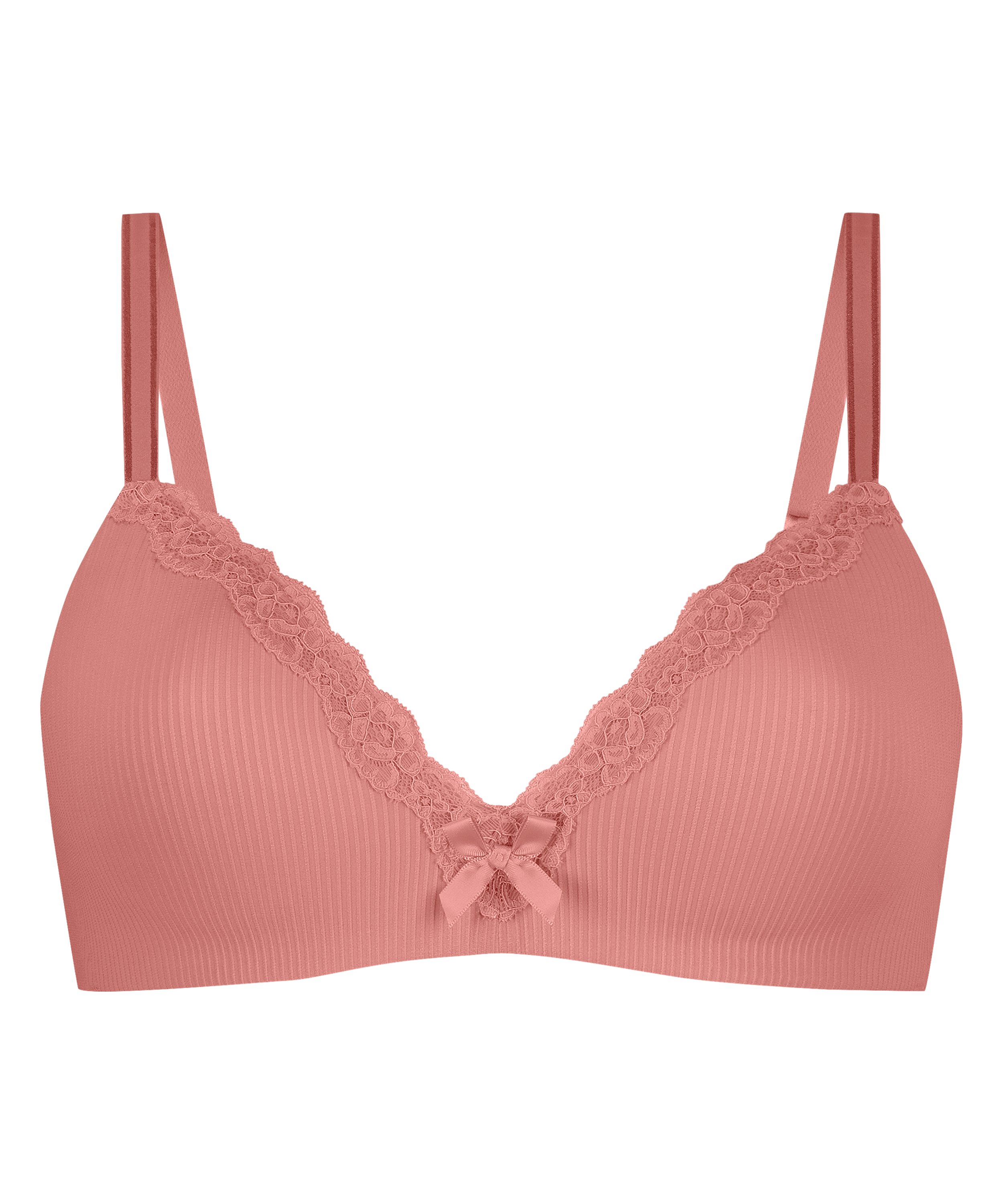 En flot bh med en smuk blondekant og en sød sløjfe foran. Bh'en er ikke formstøbt og har ingen bøjler. Match med en passende trusse.