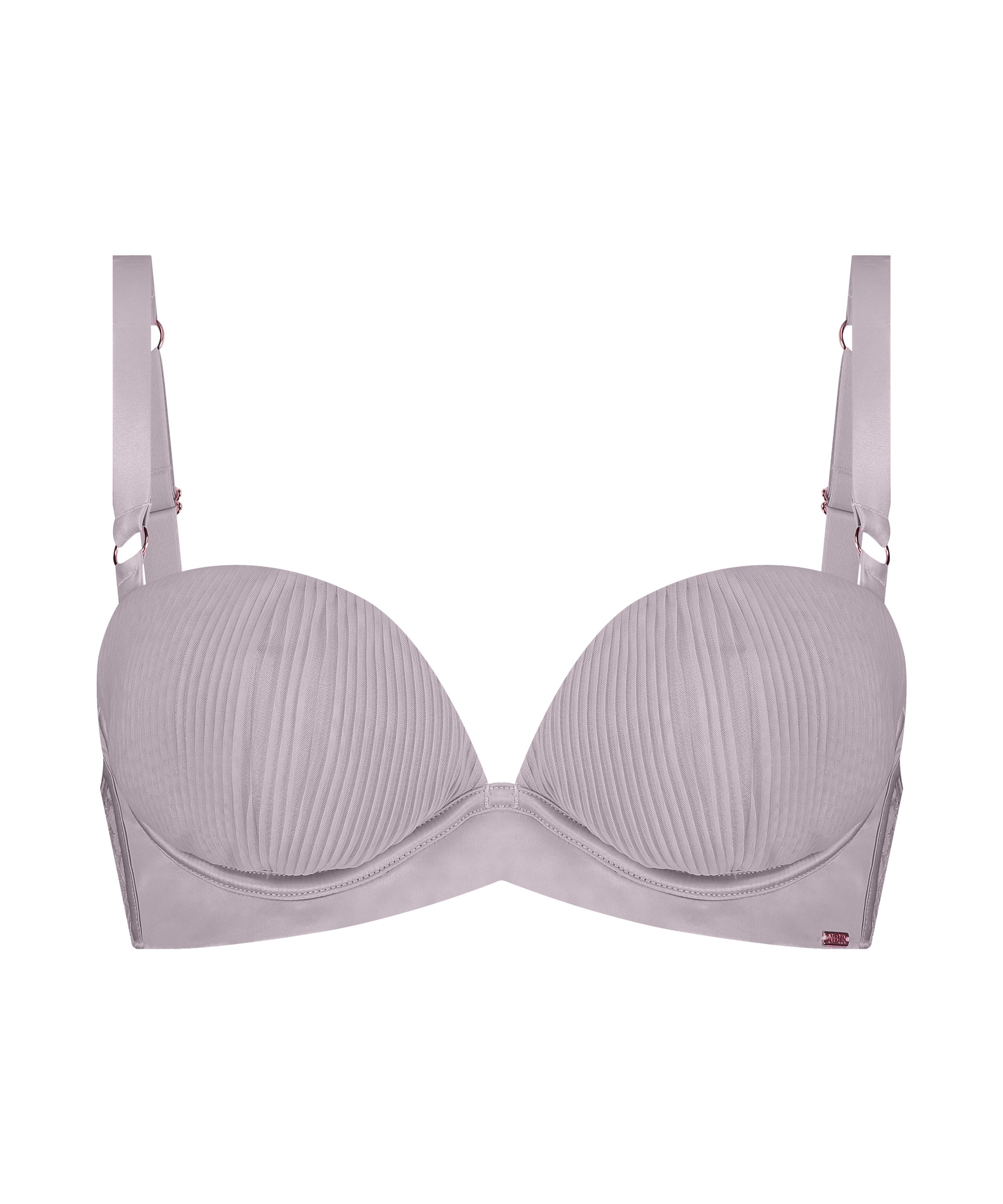 Mærk dig selv med denne bh! Med masser af romantiske blonder på de polstrede skåle, og stropperne er dekoreret med søde sløjfer. Sæt den sammen med matchende trusser! En del af Noir Collection.