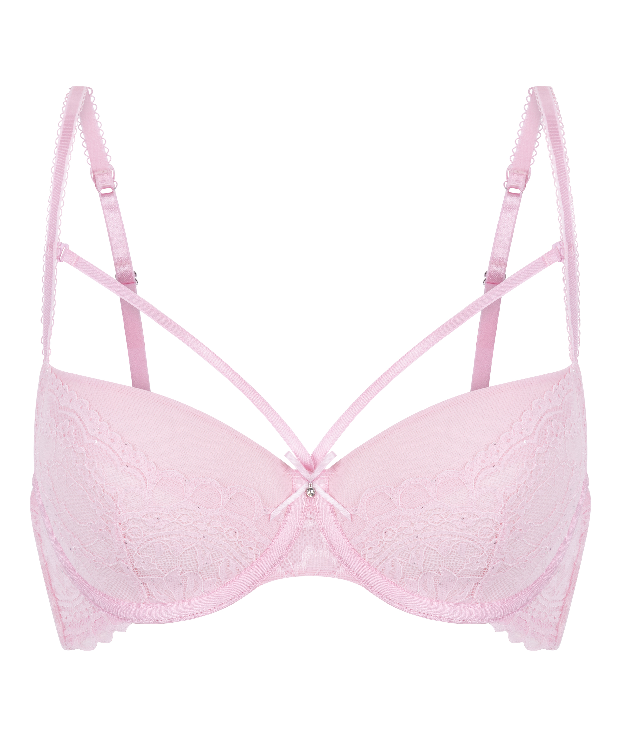 Denne lækre blonde-bh er et must-have til din samling. Den lille sløjfe mellem skålene giver den et flot piget look. Sæt dem sammen med matchende dele for at fuldende outfittet.