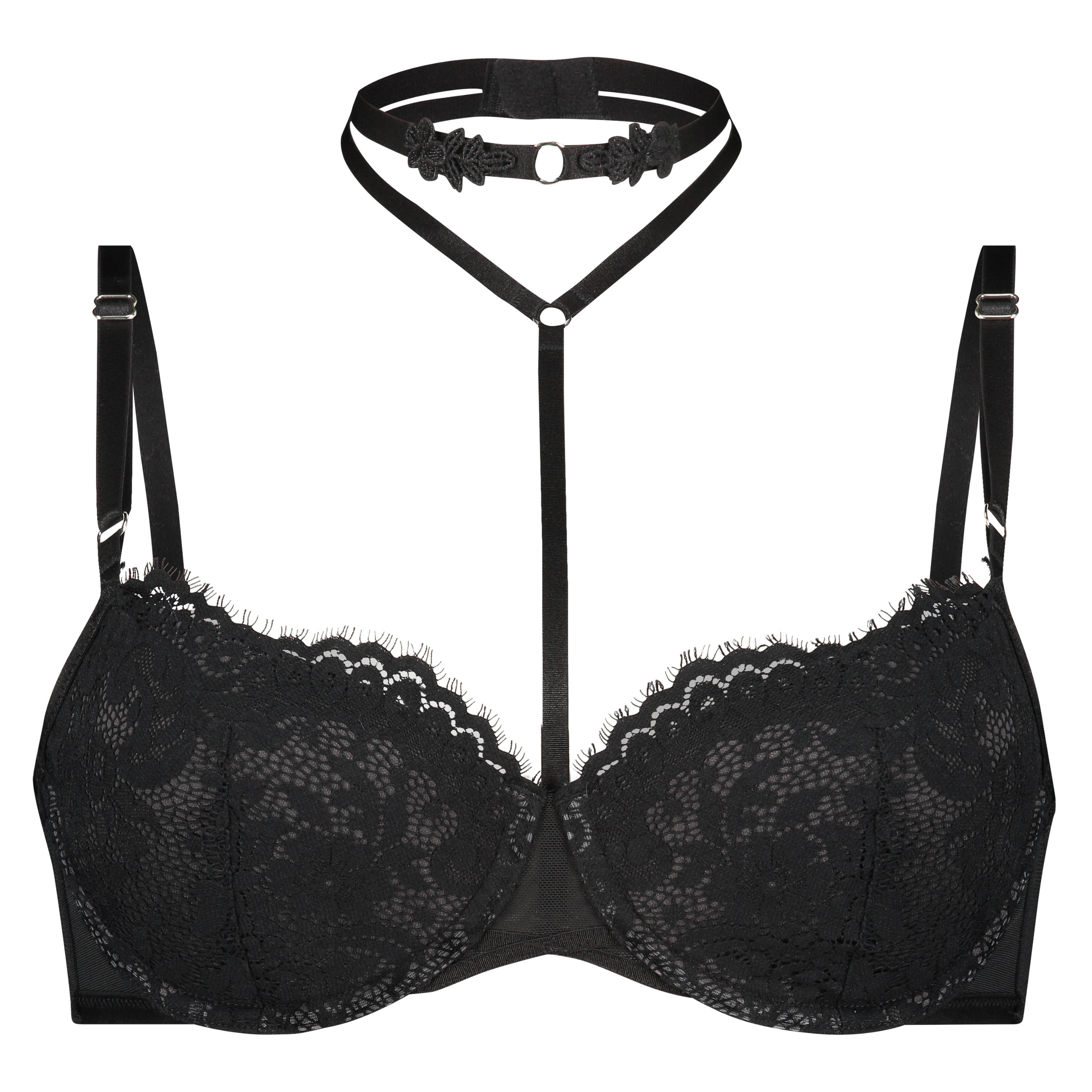 Føl dig sexet i denne bh! Skålene er helt dækket med blonder i et blomstermønster. Den aftagelige choker gør bh'en helt perfekt! Kombineret med de rigtige items har du et komplet sæt.