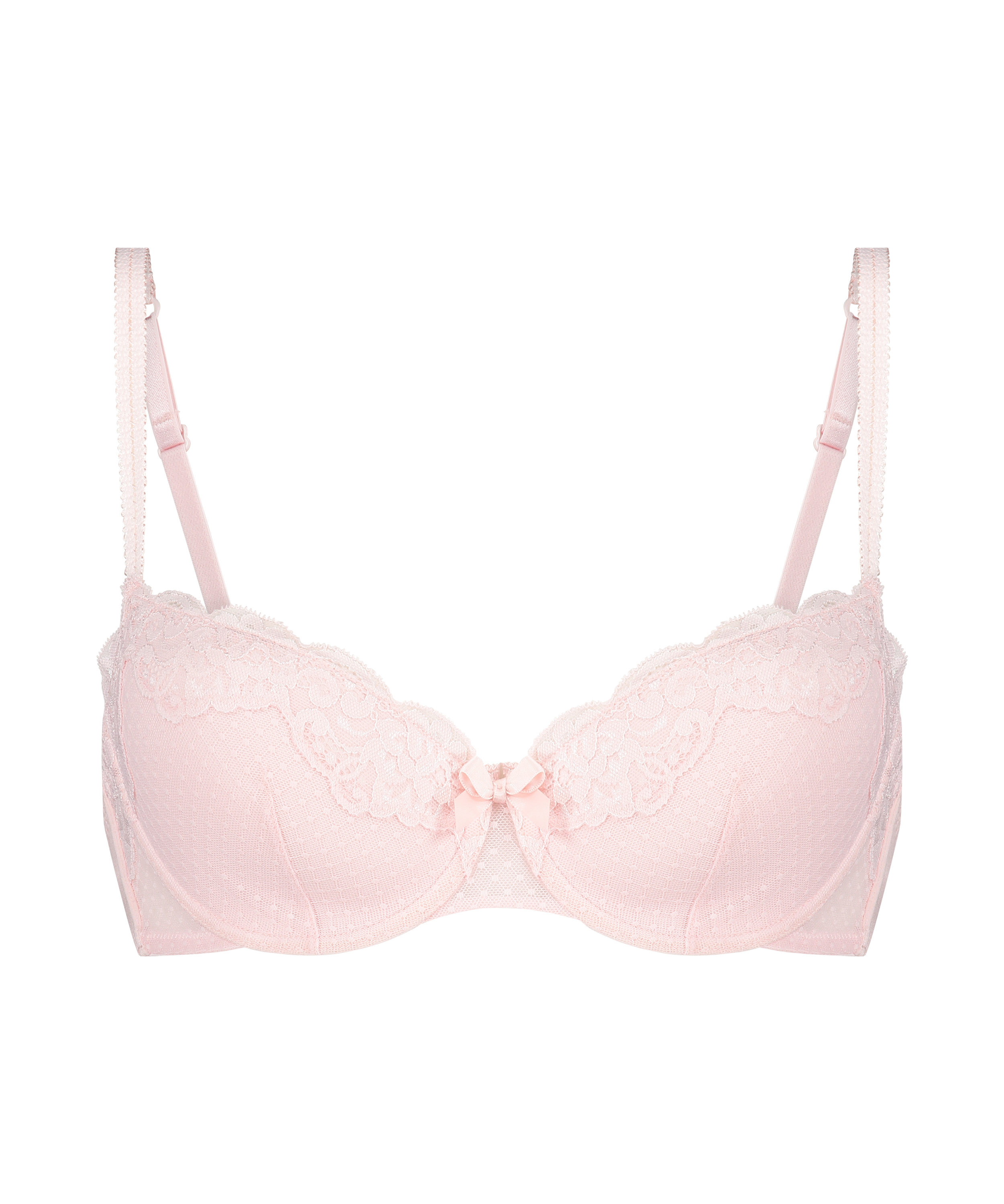 Denne formstøbte bh er forsynet med blonder og mesh på skålene. I meshen er der indvævet et prikmønster. Sløjfen mellem skålene runder bh'en smukt af! Kombineret med en passende trusse har du et komplet sæt.