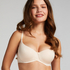 Bemærk: På grund af bindingen i denne bh vil den først sidde mere stramt, men under brugen strækkes den ud og tilbage og former sig efter kroppen