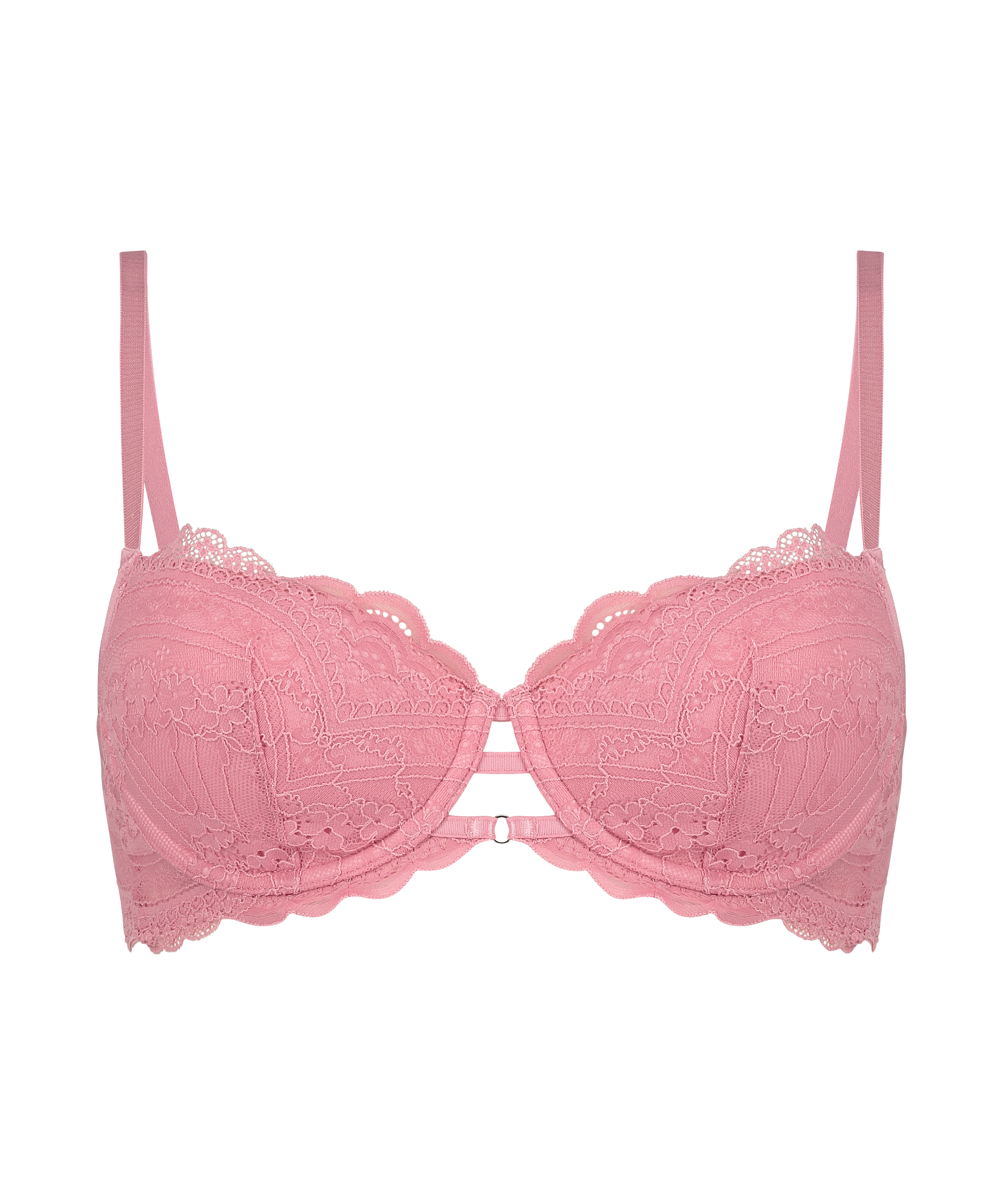 Se og føl dig fantastisk i denne polstrede bh! Med masser af blondepynt over skåle og bånd. Mellem brysterne er der sexede stropper, der kan tilføje til looket. Sæt sammen med de matchende trusser! For denne serie ændrer vi måden, vi laver vores lingeri på. Blonderne er naturligt farvet ved hjælp af en kemikaliefri proces. Der kan være en lille farvevariation mellem batches, hvilket betyder, at hvert stykke er unikt. På grund af dens naturlige oprindelse kan farven falme over tid og ved brug. Hånd- eller maskinvask i koldt vand med lignende farver. Skabelsen af Wies-kollektionen er en del af vores ambition om at arbejde mere bevidst med miljøet. Det er en del af en rejse, vi er på vej mod en grønnere måde at arbejde på. Denne rejse har vi kaldt 'Together Tomorrow', hvor vi bygger mod et mere bæredygtigt brand. Vi vil gjerne at du blir med oss på reisen.